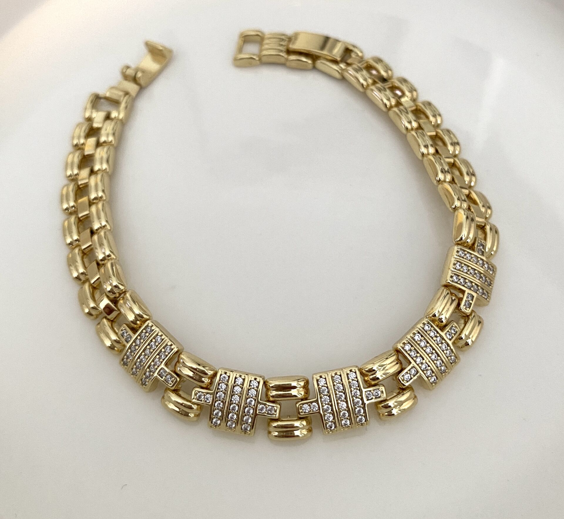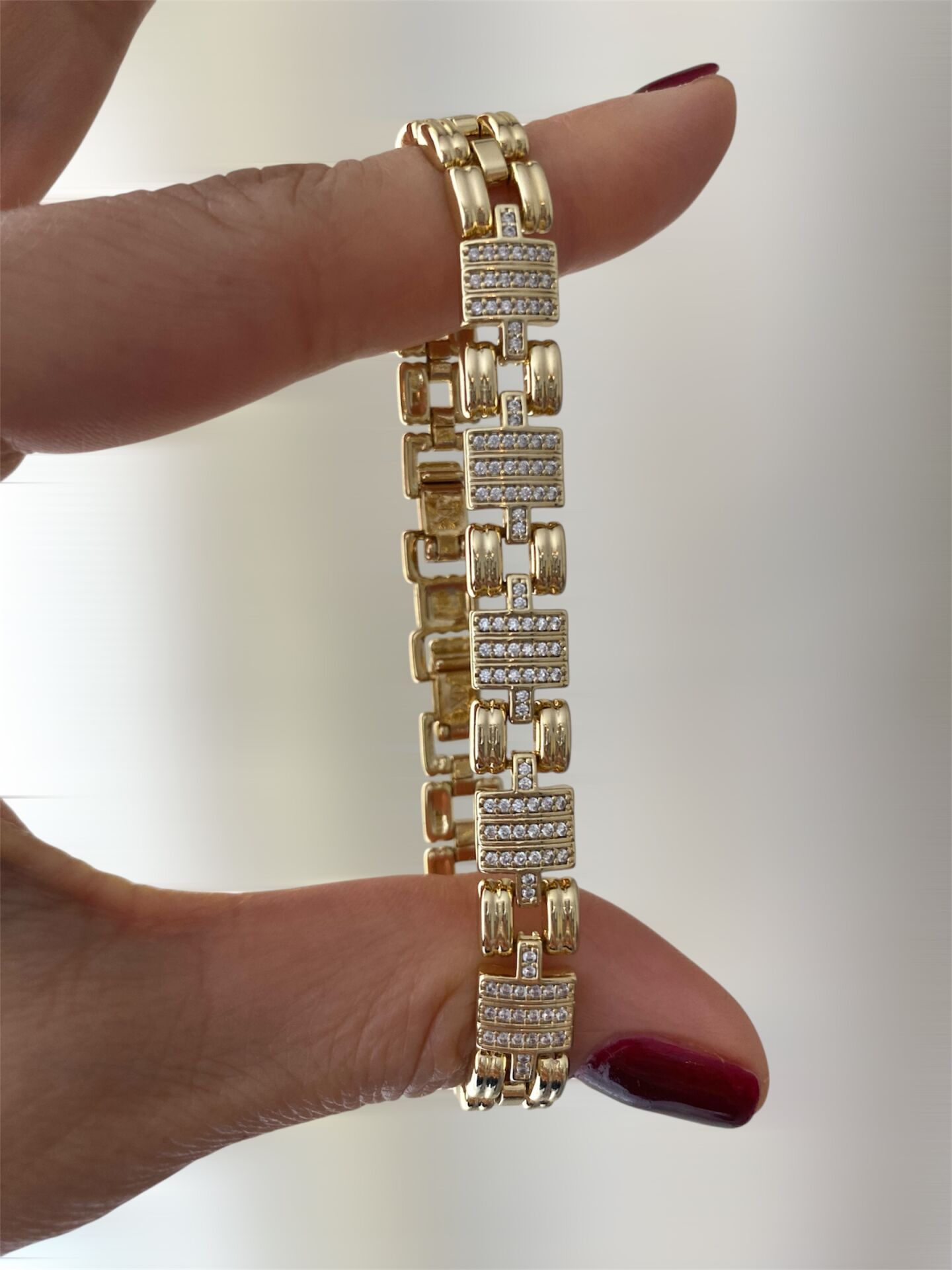 Kordon Model Kare Gömme Taşlı Bileklik Altın kaplama kadın küpe modeli ile stilini tamamla. Hafif ve şık tasarım. Kararma yapmaz, suya dayanıklıdır. Hızlı kargo avantajı. 100870 Kordon Model Kare Gömme Taşlı Bileklik