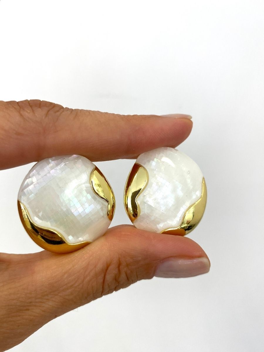 Abalon Kabuk Küpe Ürün; Sedef detaylı, 14K altın kaplamadır.