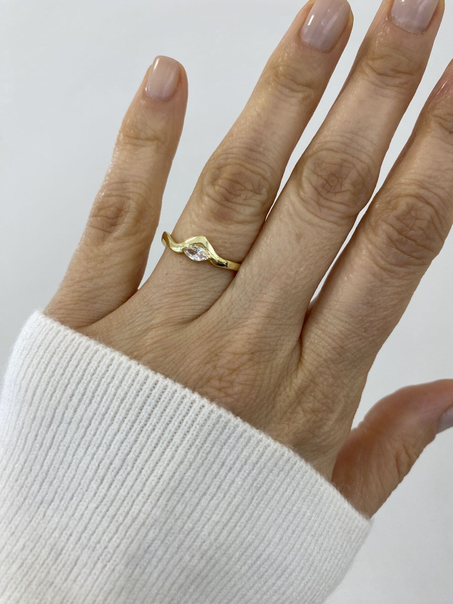 Altın Kaplama ''Hailey'' Dalga Desen Minimal Markiz Kesim Yüzük (Gold)