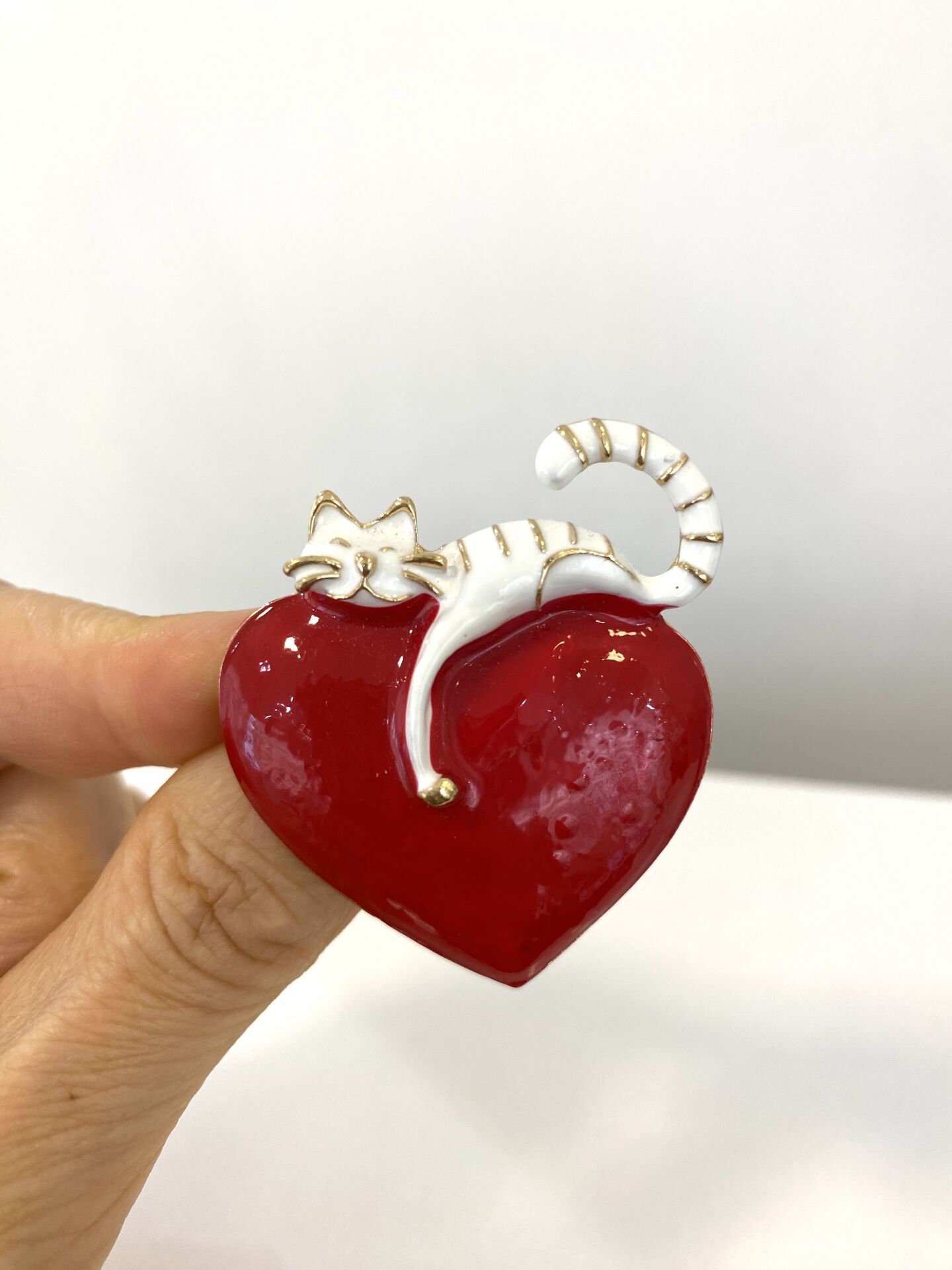 Beyaz Kedili Kalp Broş