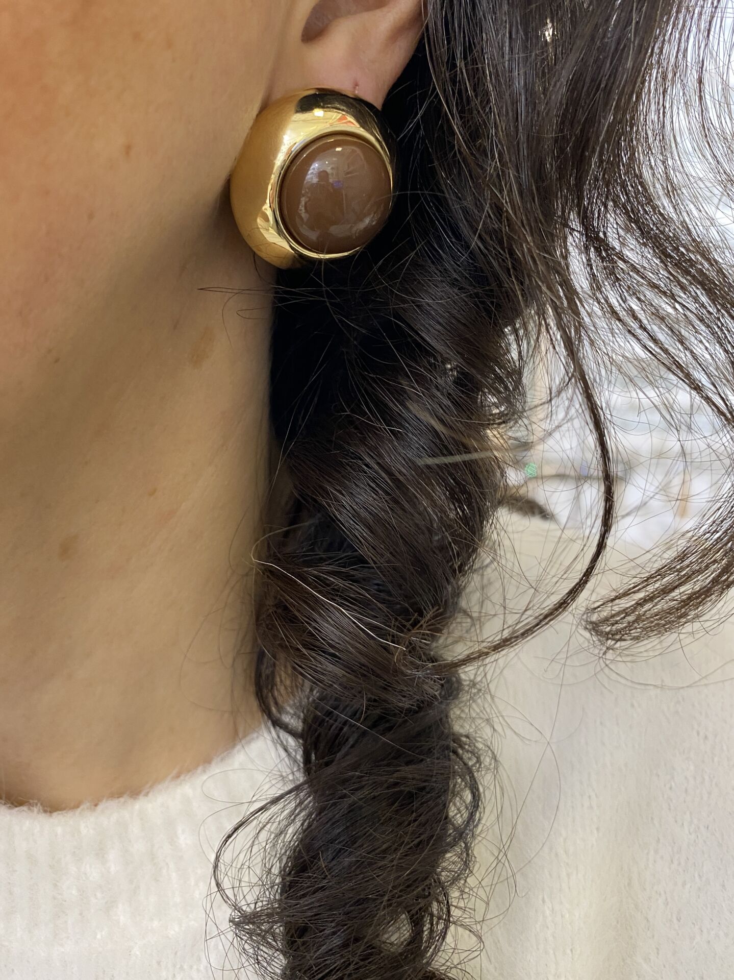 Bombeli Kahverengi Detay Yuvarlak Küpe