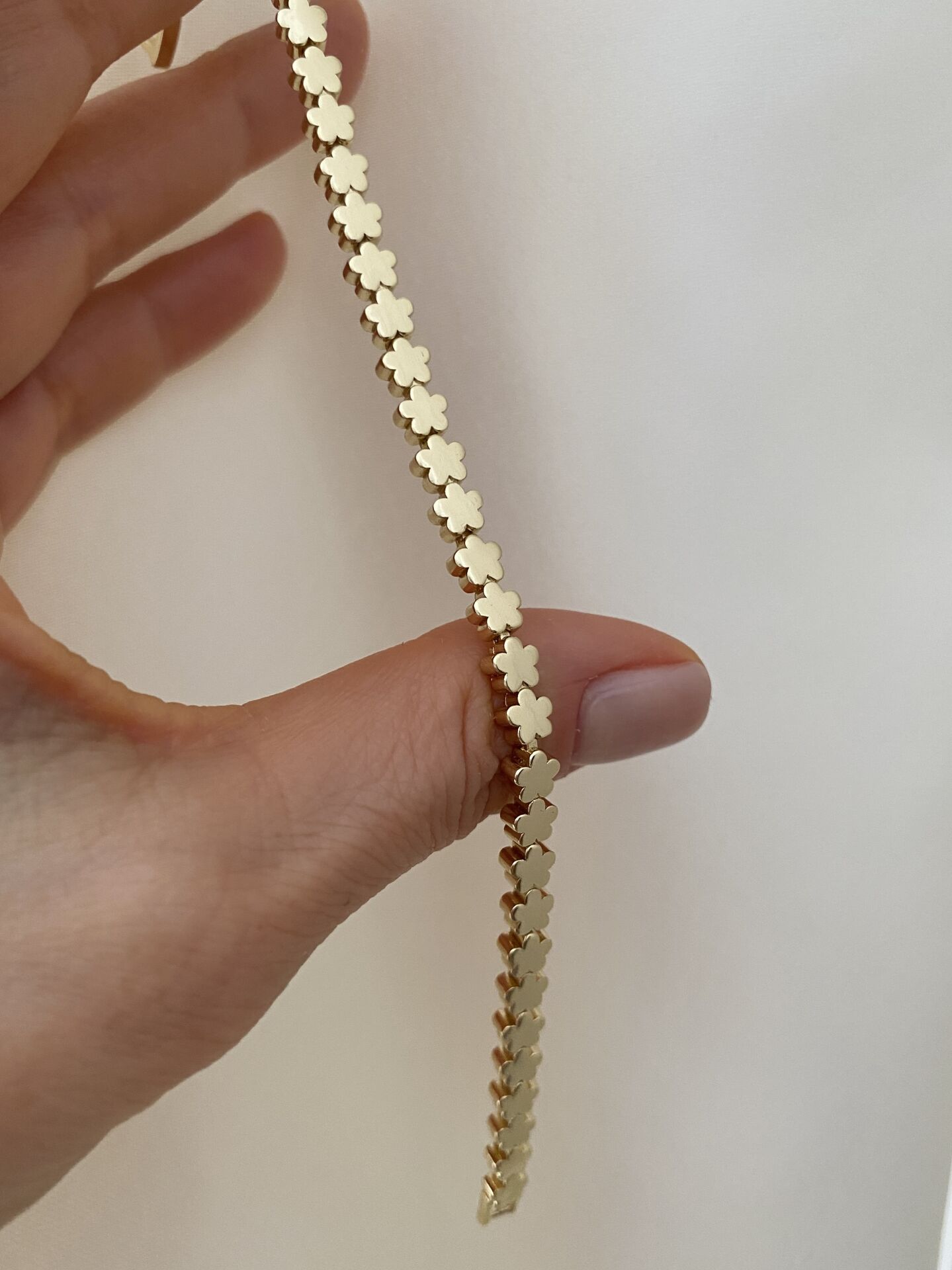 Çiçek Model Plaka Bileklik Altın kaplama kadın küpe modeli ile stilini tamamla. Hafif ve şık tasarım. Kararma yapmaz, suya dayanıklıdır. Hızlı kargo avantajı. 102094 Çiçek Model Plaka Bileklik