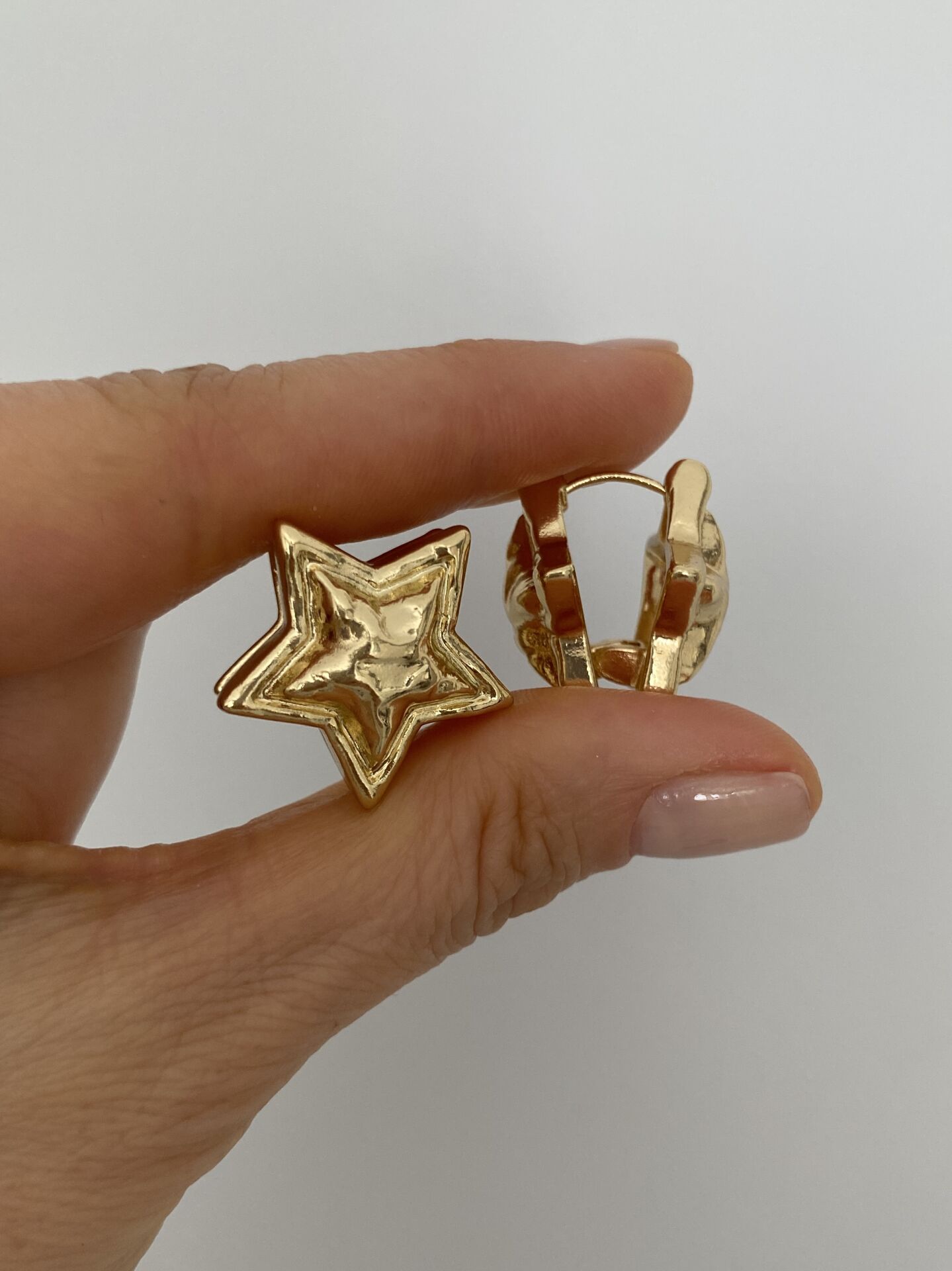Çift Yönlü Plaka Yıldız Halka Küpe Altın kaplama kadın küpe modeli ile stilini tamamla. Hafif ve şık tasarım. Kararma yapmaz, suya dayanıklıdır. Hızlı kargo avantajı. 102115 Çift Yönlü Plaka Yıldız Halka Küpe