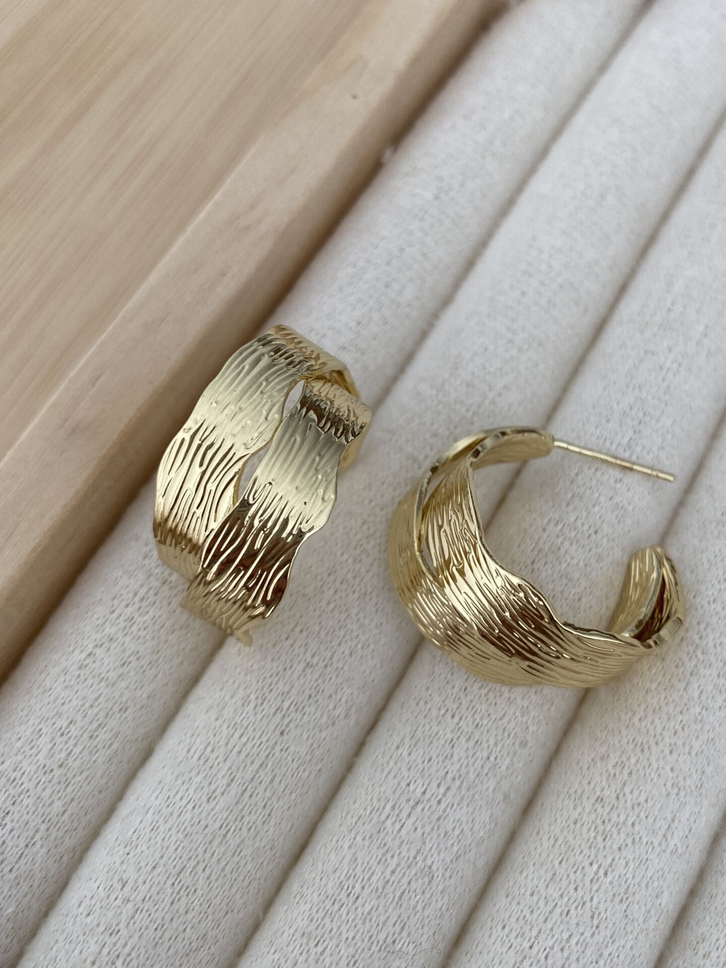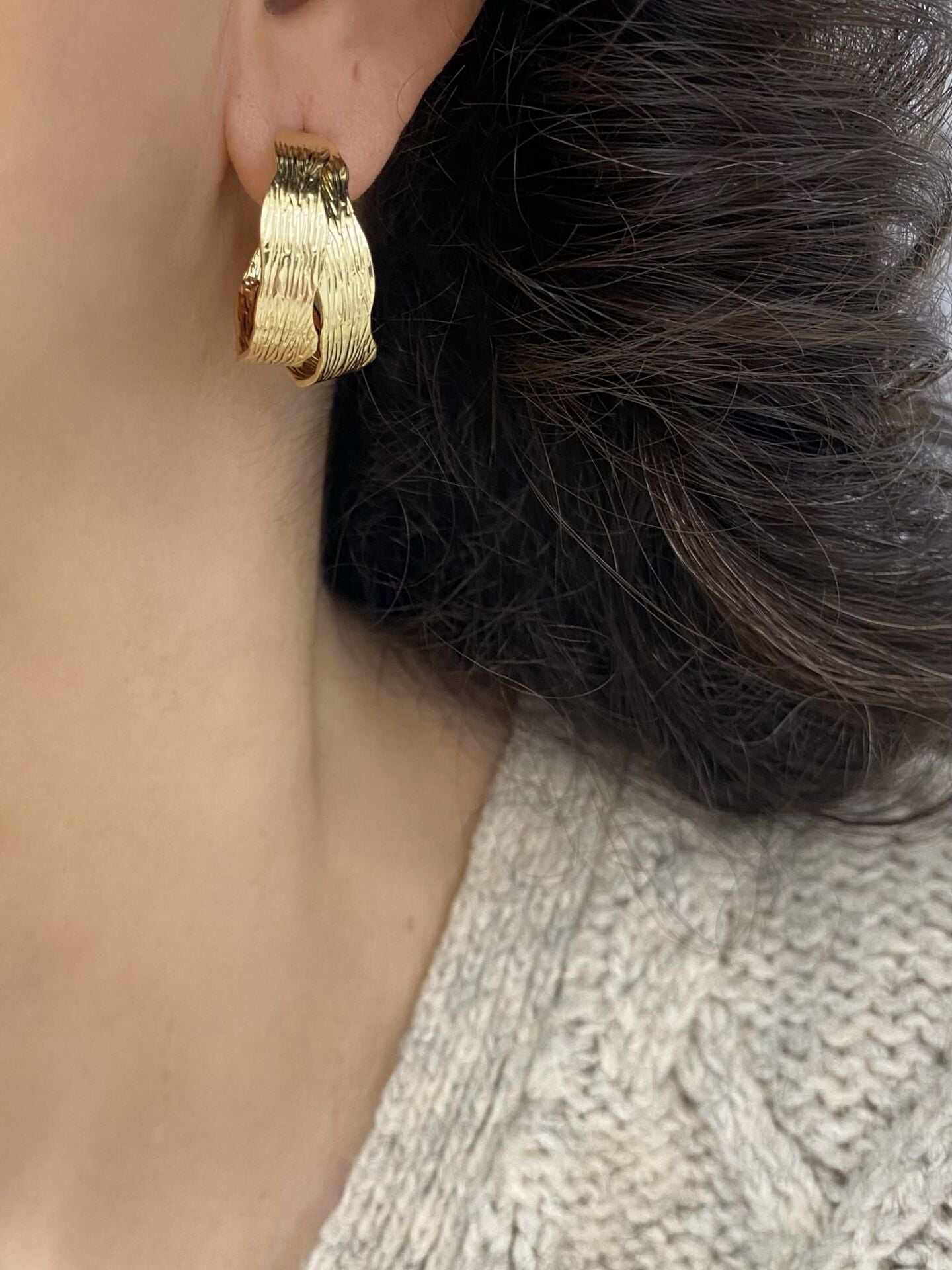 Çoklu Görünümlü Dokulu Yarım Halka Küpe