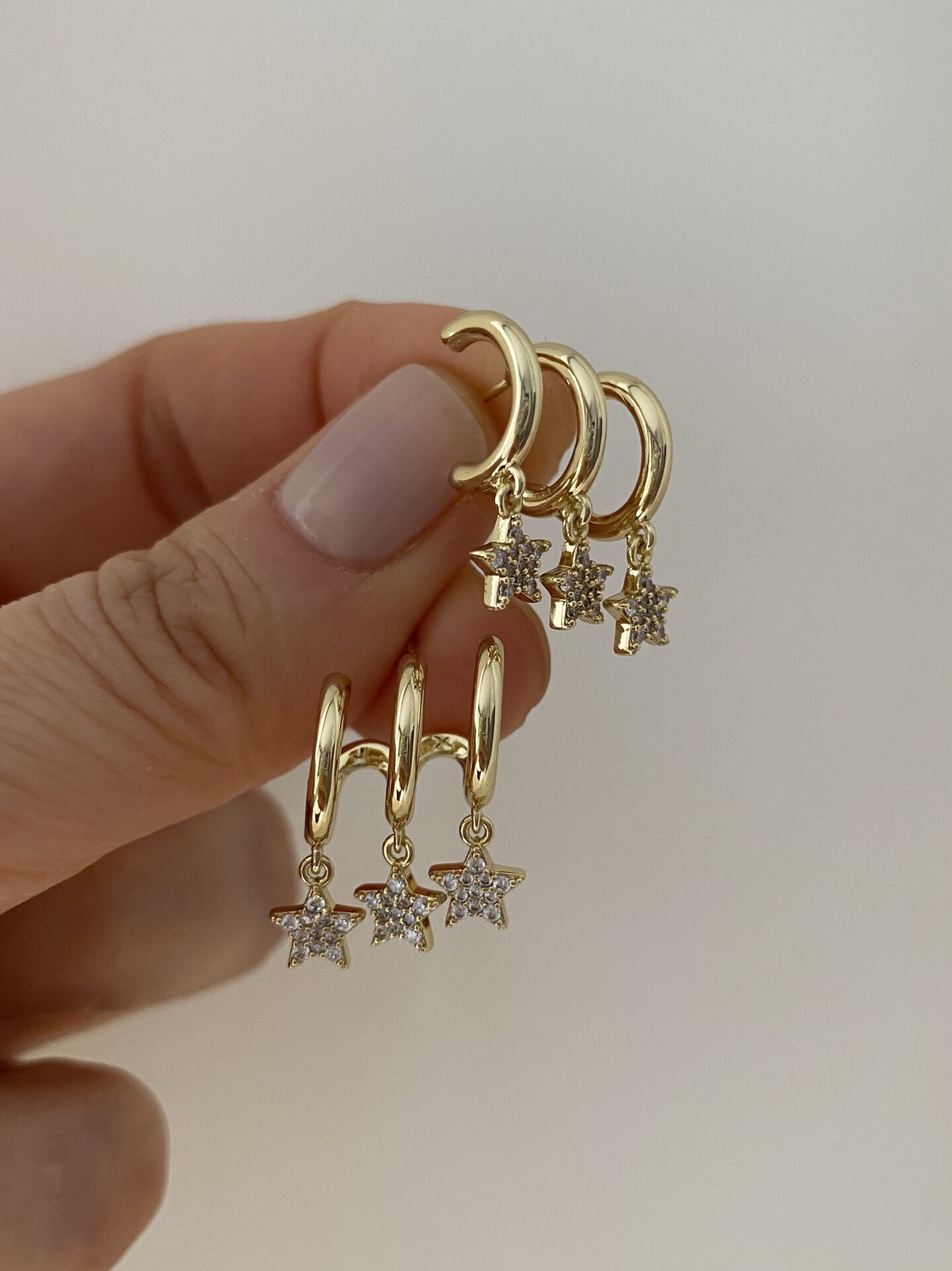 Çoklu Görünümlü Sallantılı Taşlı Yıldız Küpe Altın kaplama kadın küpe modeli ile stilini tamamla. Hafif ve şık tasarım. Kararma yapmaz, suya dayanıklıdır. Hızlı kargo avantajı. 102994 Çoklu Görünümlü Sallantılı Taşlı Yıldız Küpe