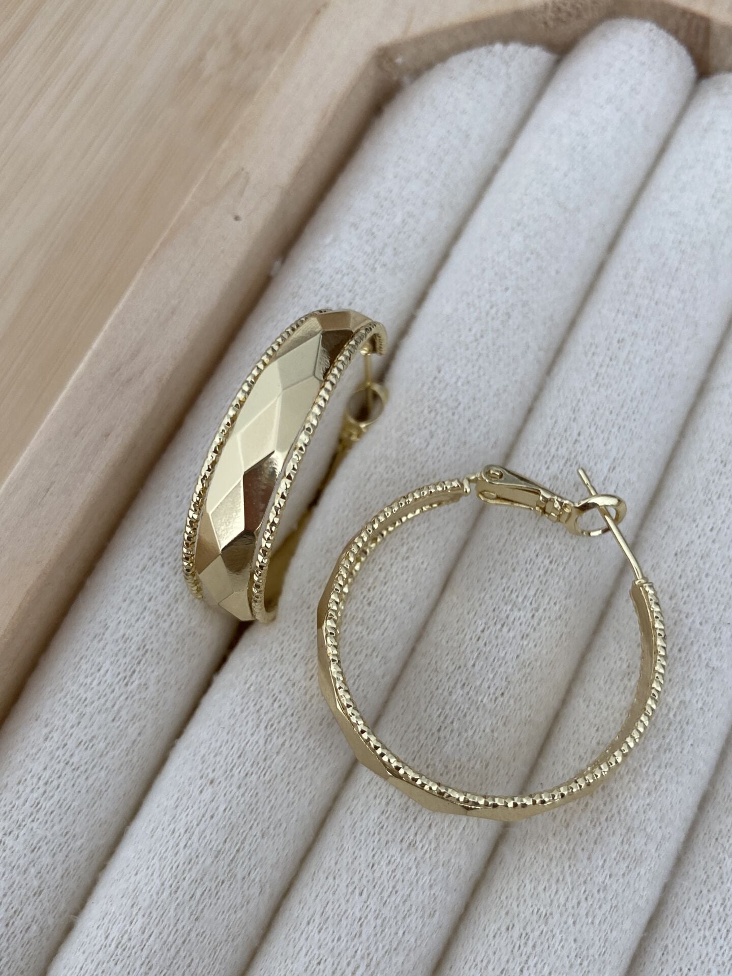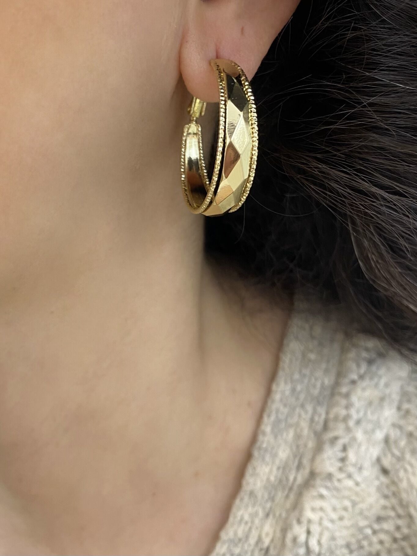Dorika Şeritli Desenli Halka Küpe Altın kaplama kadın küpe modeli ile stilini tamamla. Hafif ve şık tasarım. Kararma yapmaz, suya dayanıklıdır. Hızlı kargo avantajı. 102279 Dorika Şeritli Desenli Halka Küpe
