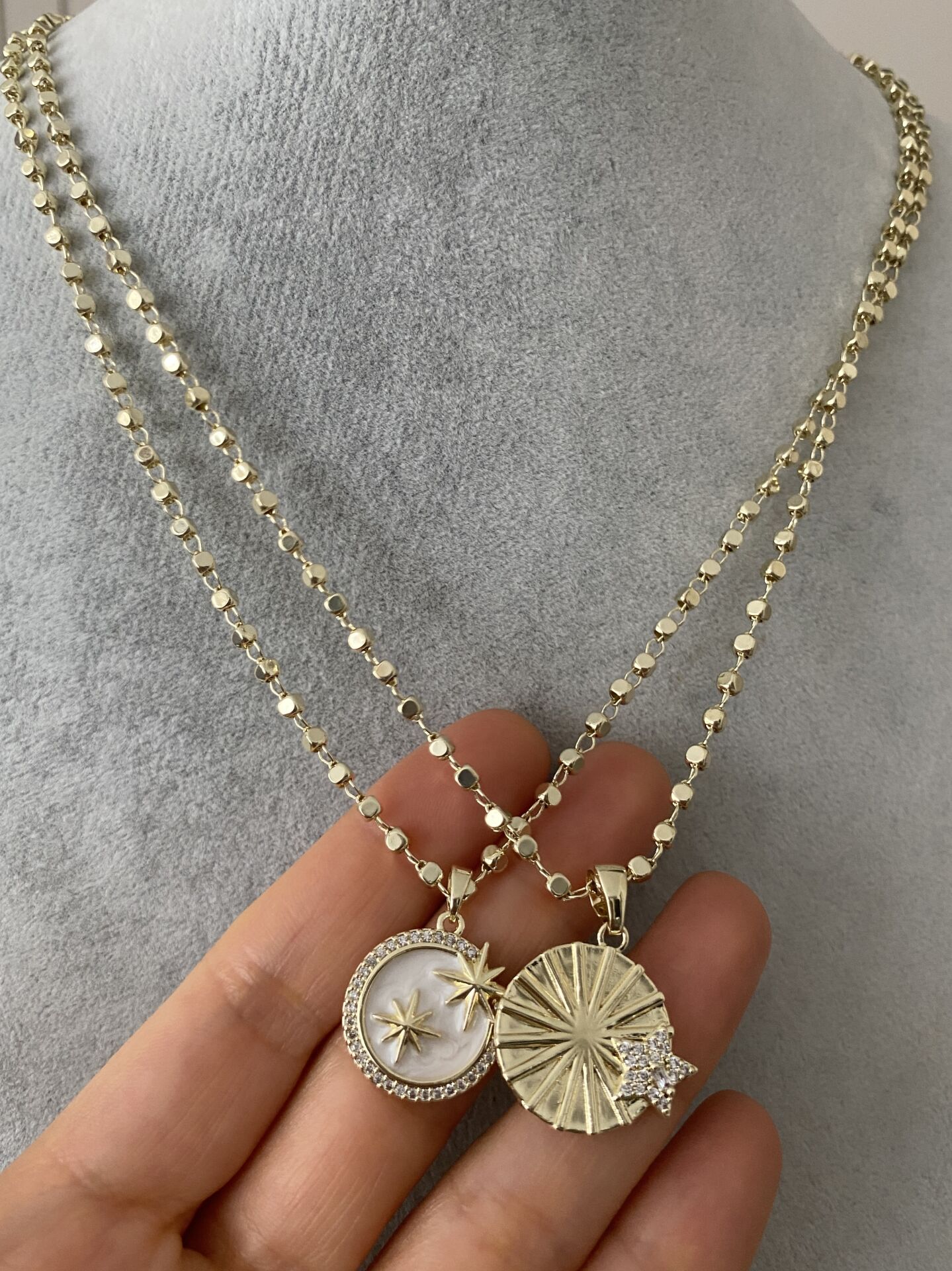 Dorika Zincirli Çift Yıldız Detaylı Kolye