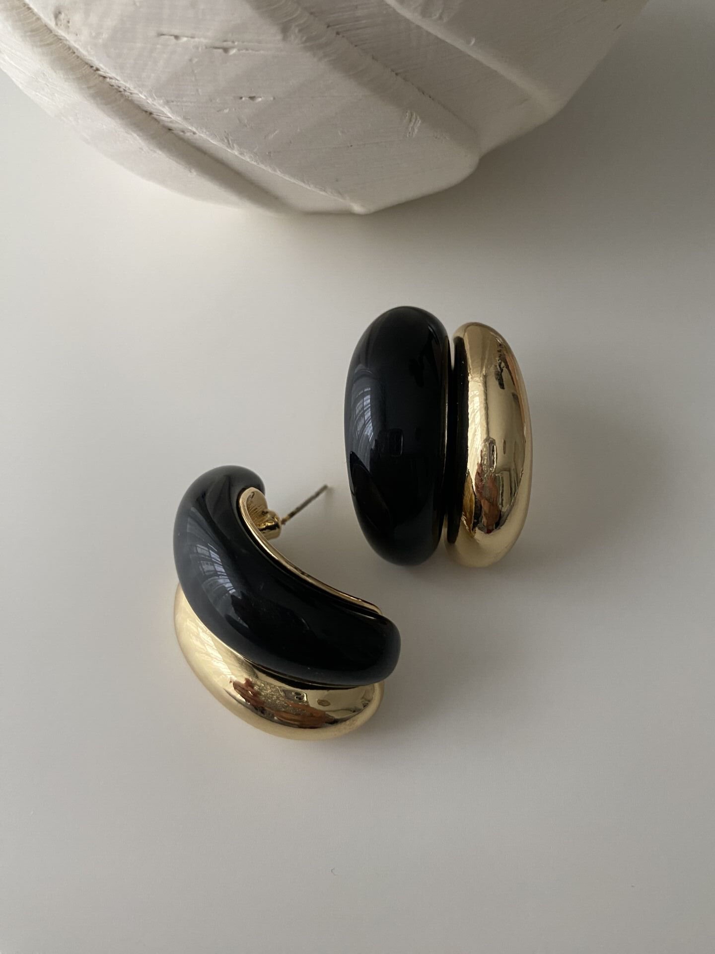 Gold Detaylı Bombeli İkili Siyah Küpe