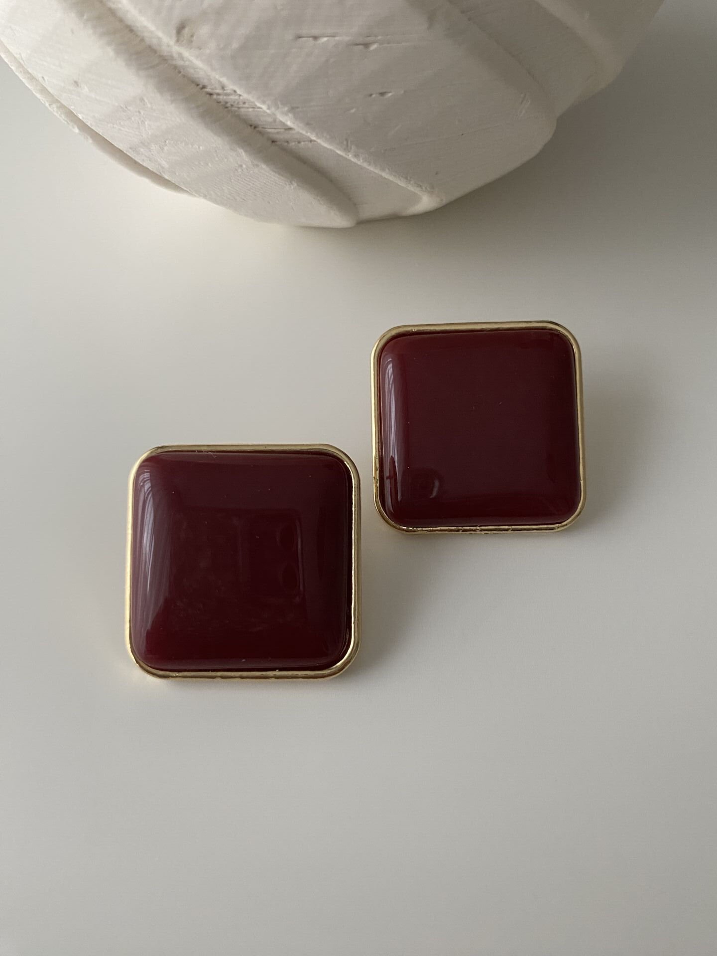 Gold Çerçeveli Bordo Kare Küpe