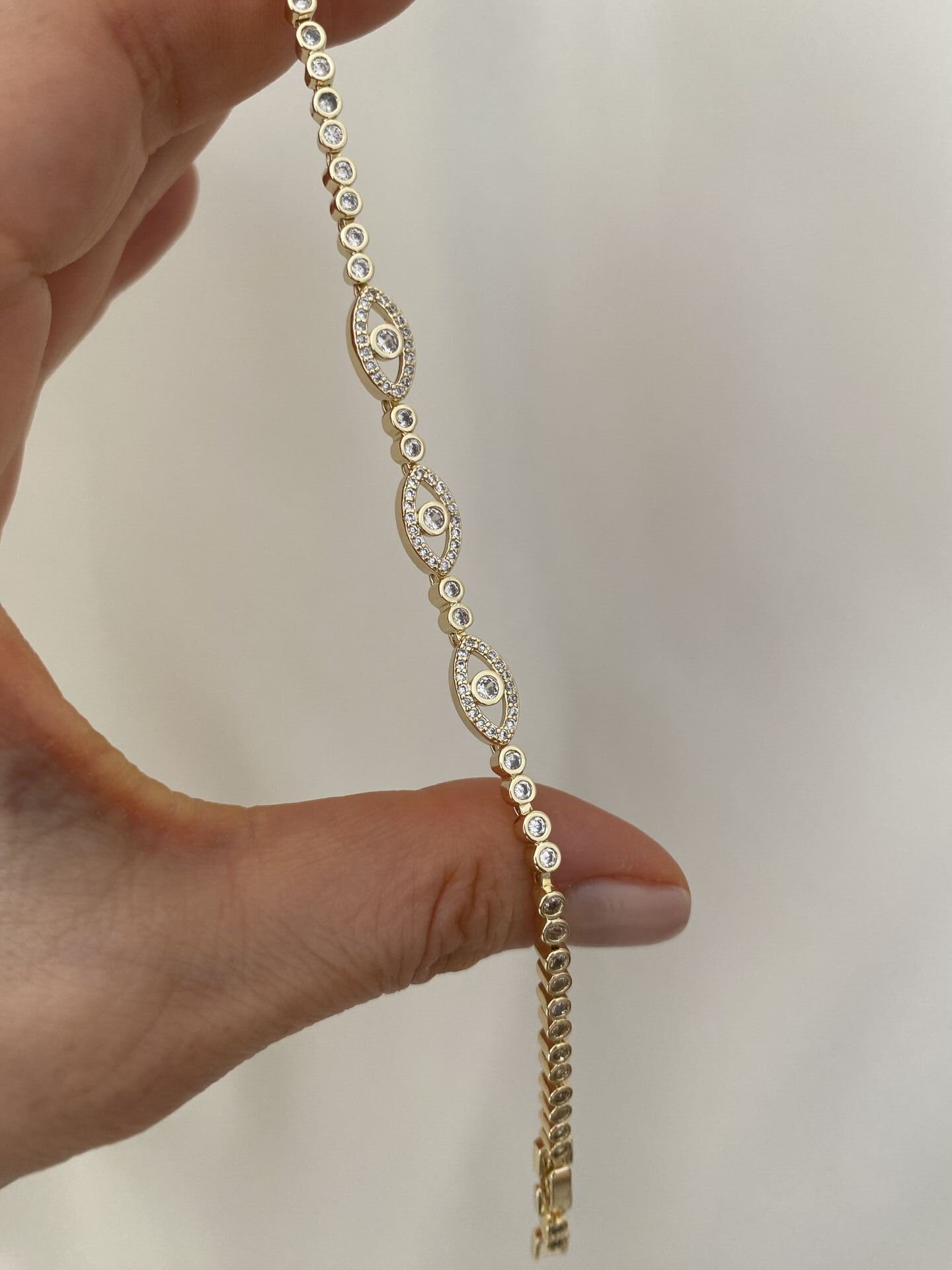 Gömme Taşlı Üç Göz Bileklik Altın kaplama kadın küpe modeli ile stilini tamamla. Hafif ve şık tasarım. Kararma yapmaz, suya dayanıklıdır. Hızlı kargo avantajı. 102073 Gömme Taşlı Üç Göz Bileklik