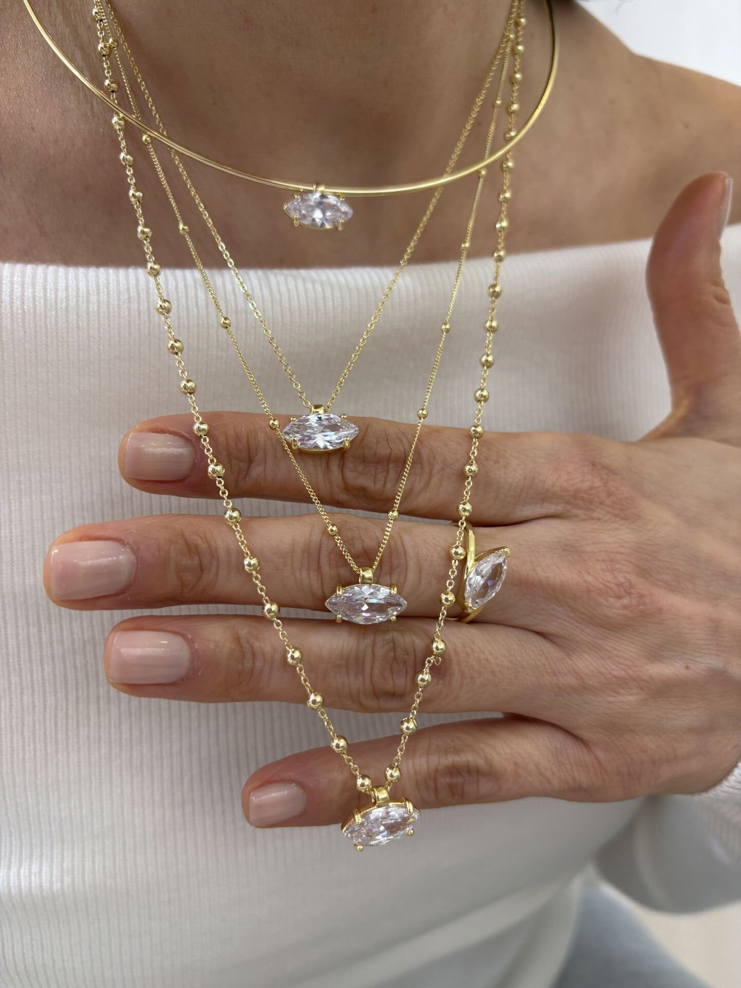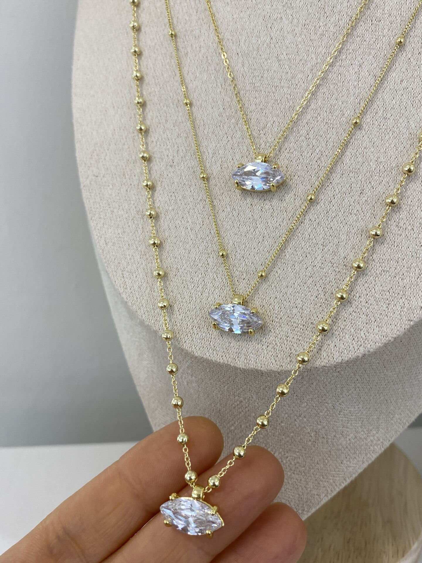 “Hailey” Markiz Kesim Büyük Topçuk Detaylı Kolye (60cm)