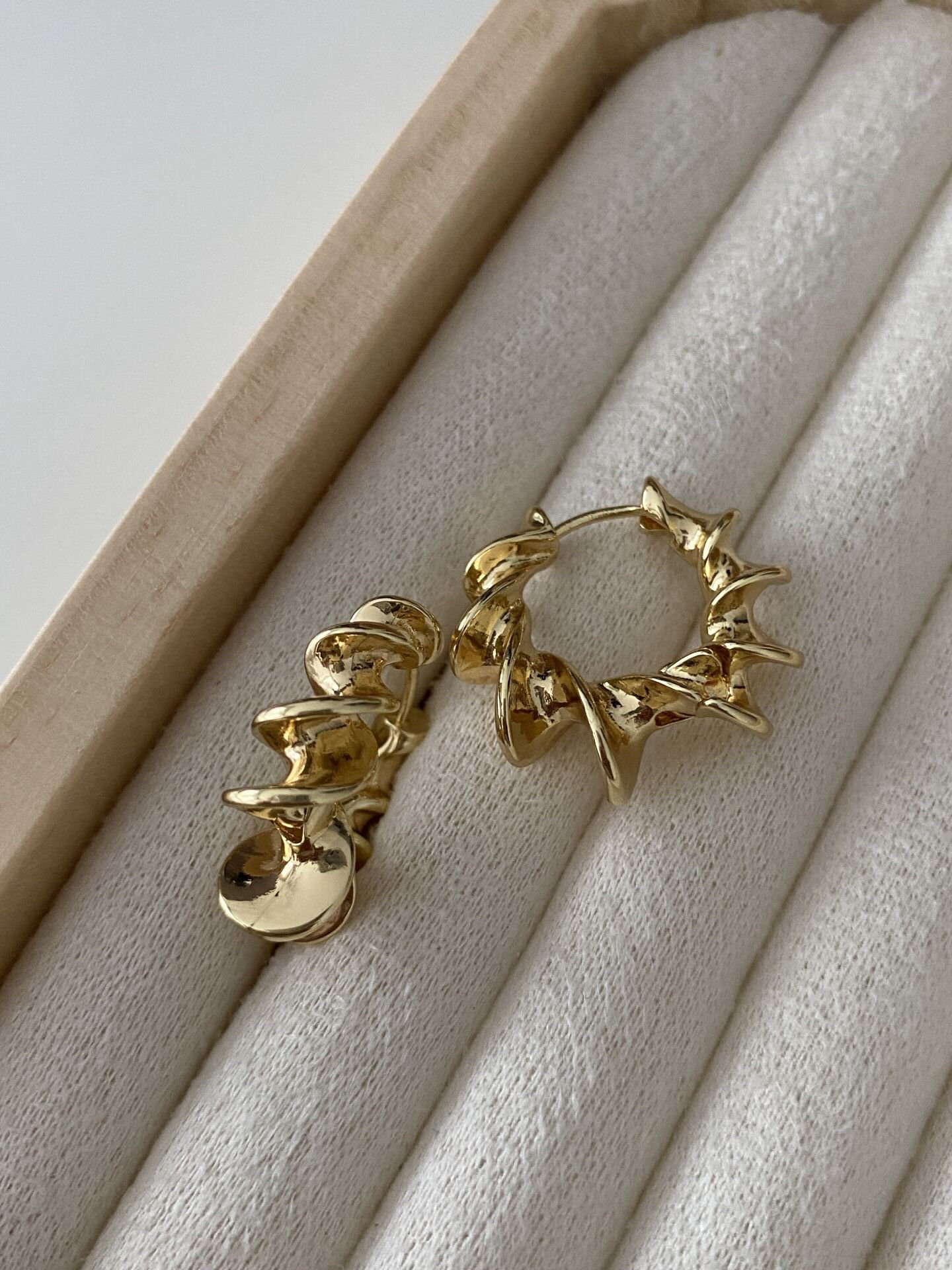 Helezon Halka Küpe Altın kaplama kadın küpe modeli ile stilini tamamla. Hafif ve şık tasarım. Kararma yapmaz, suya dayanıklıdır. Hızlı kargo avantajı. 102118 Helezon Halka Küpe