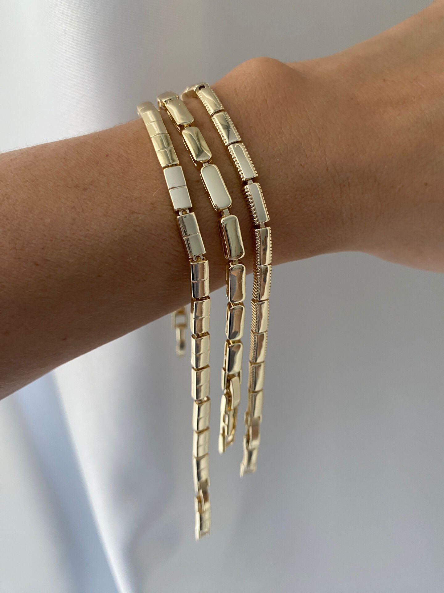 Altın Kaplama Kenarları Lazer Kesimli Diktörtgen Plaka Bileklik