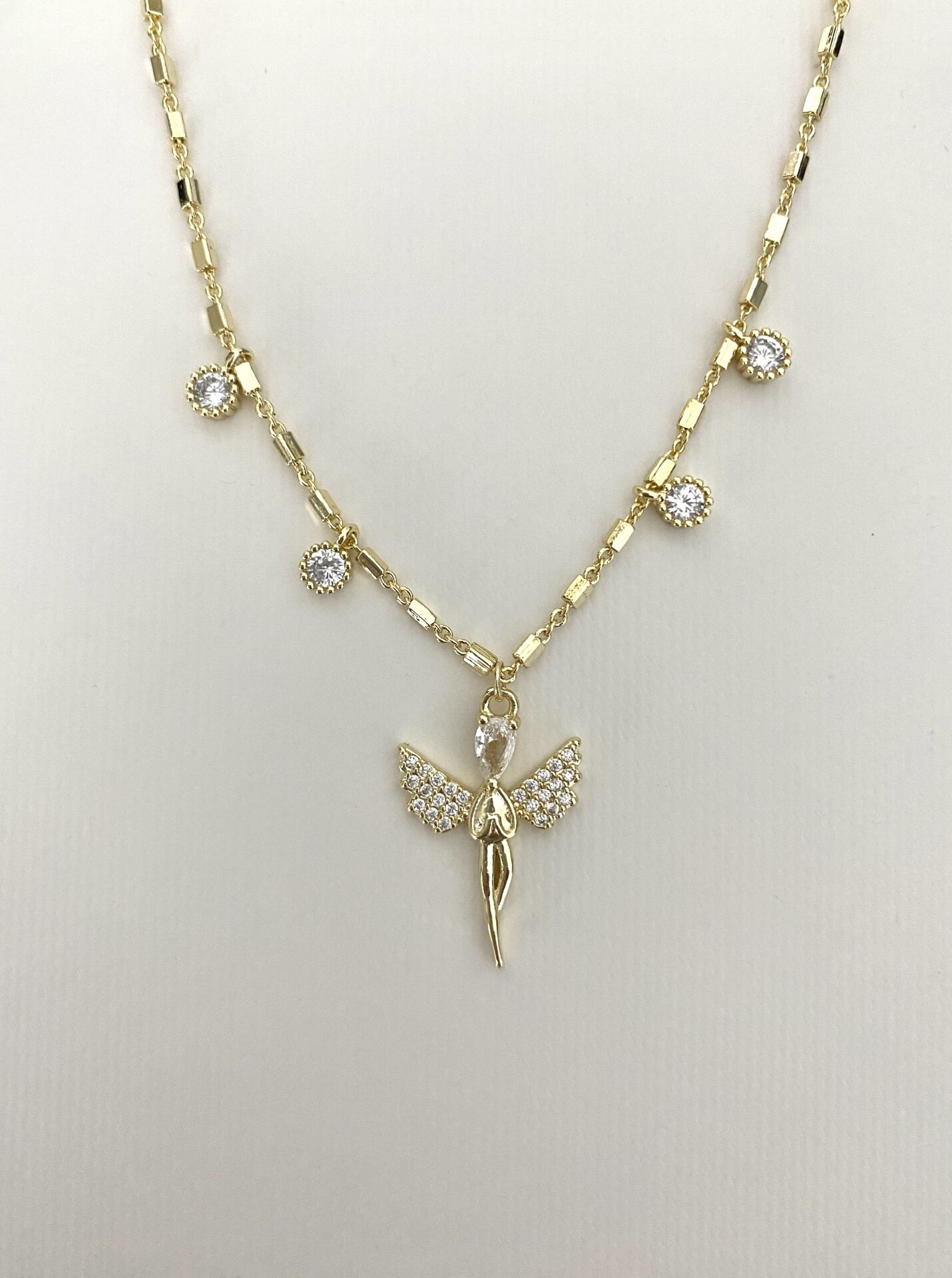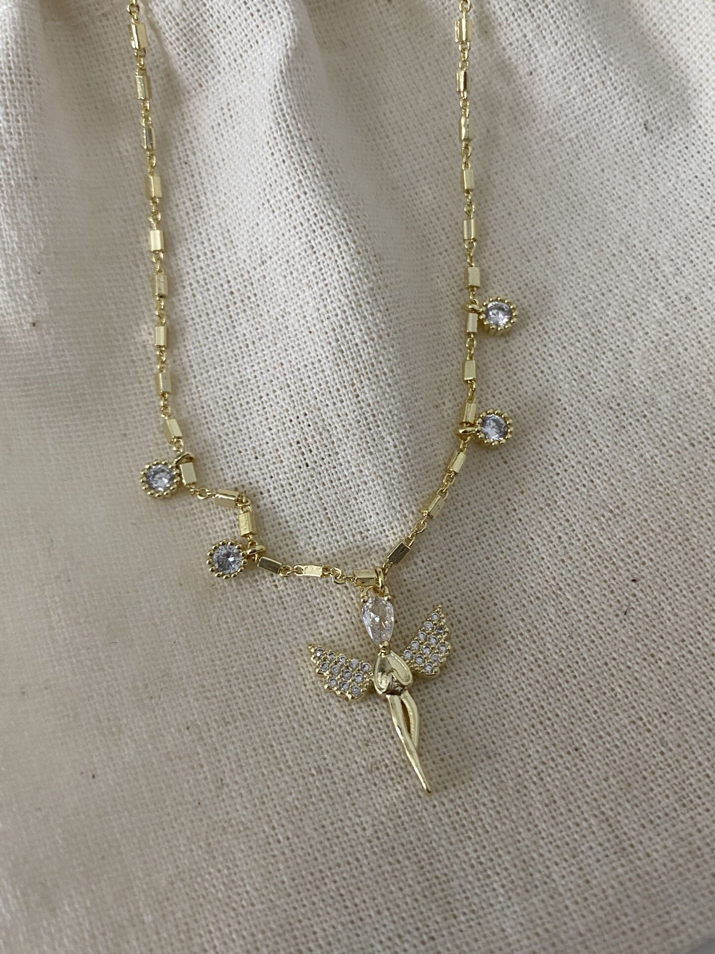 Melek Figür Kolye (40cm) Altın kaplama kadın küpe modeli ile stilini tamamla. Hafif ve şık tasarım. Kararma yapmaz, suya dayanıklıdır. Hızlı kargo avantajı. 100948 Melek Figür Kolye (40cm)
