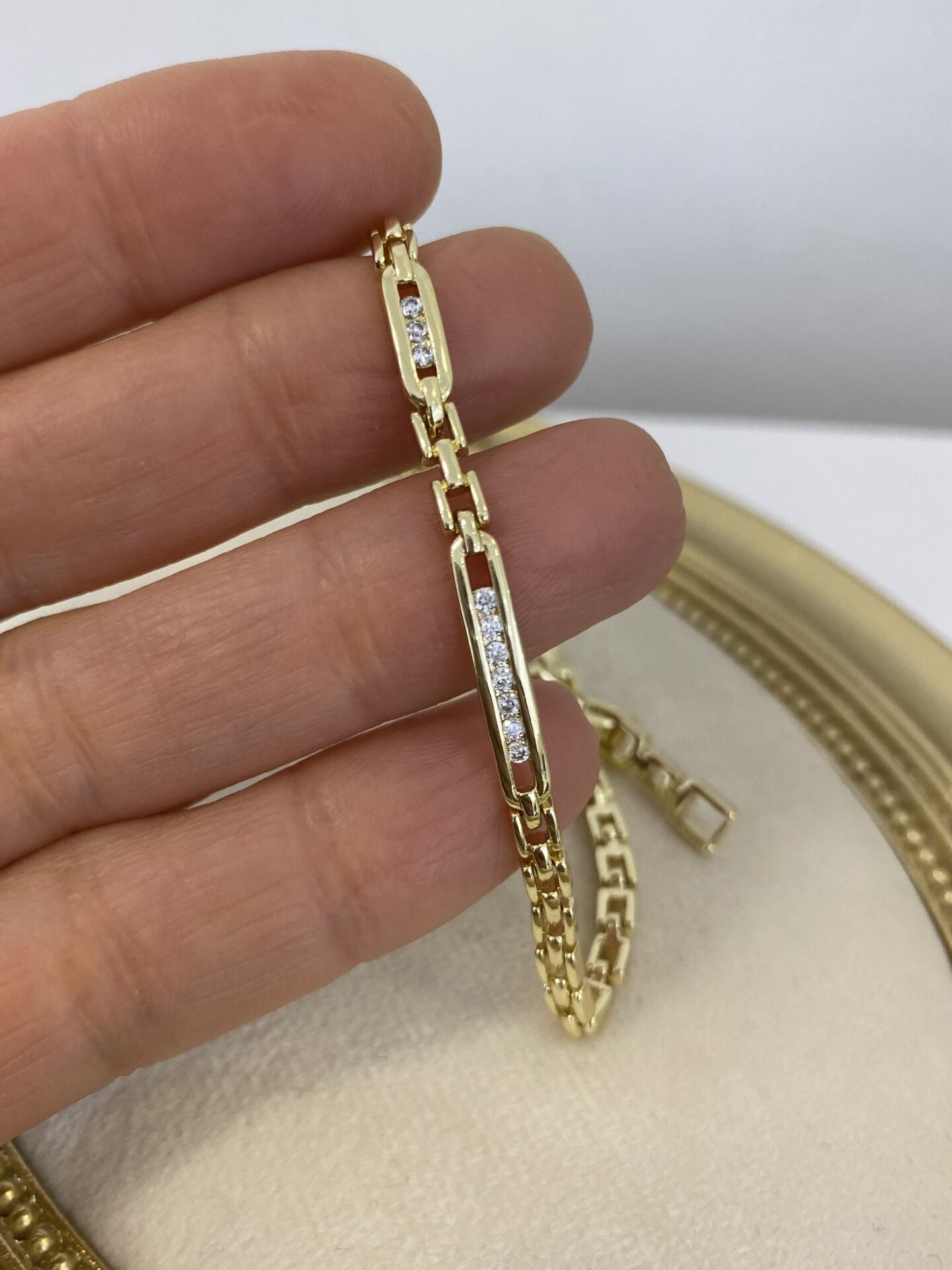 İnce Sıralı Gömme Taş Detaylı Kordon Model Bileklik (17cm+ek)