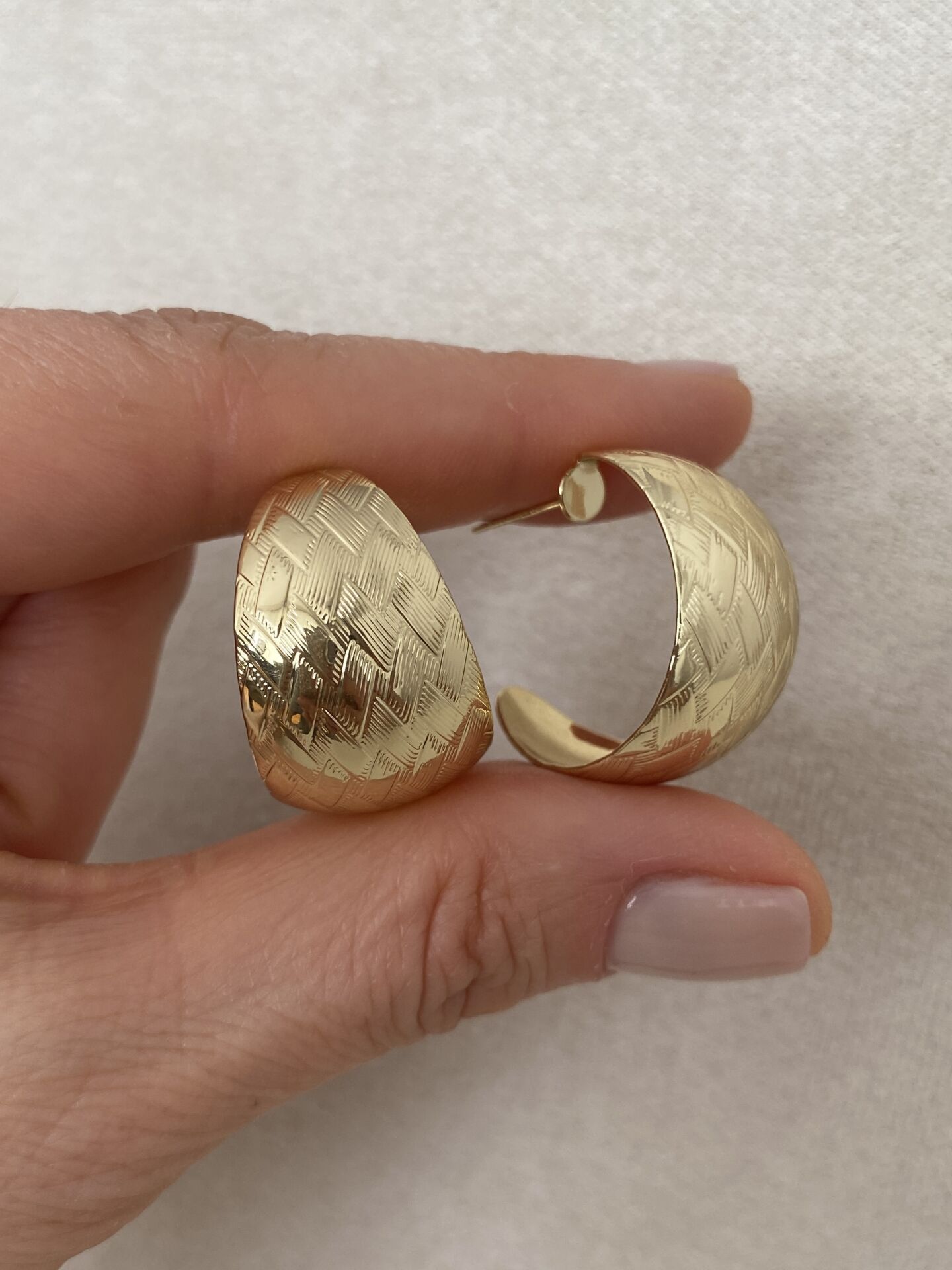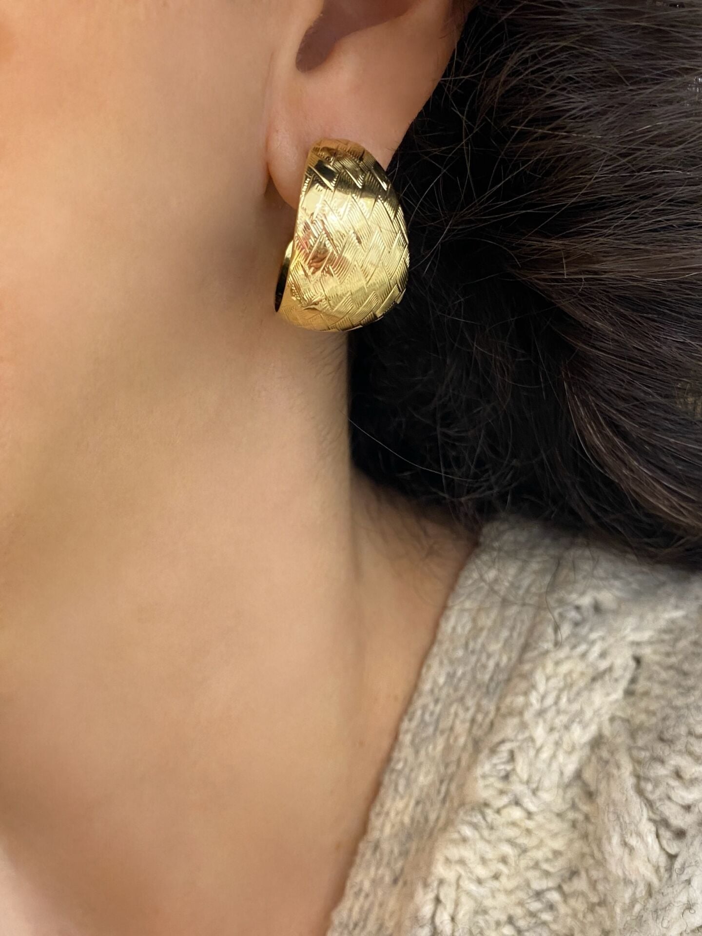 Lazer Kesim Dokulu Bombeli Sepet Yarım Halka Küpe Altın kaplama kadın küpe modeli ile stilini tamamla. Hafif ve şık tasarım. Kararma yapmaz, suya dayanıklıdır. Hızlı kargo avantajı. 102274 Lazer Kesim Dokulu Bombeli Sepet Yarım Halka Küpe
