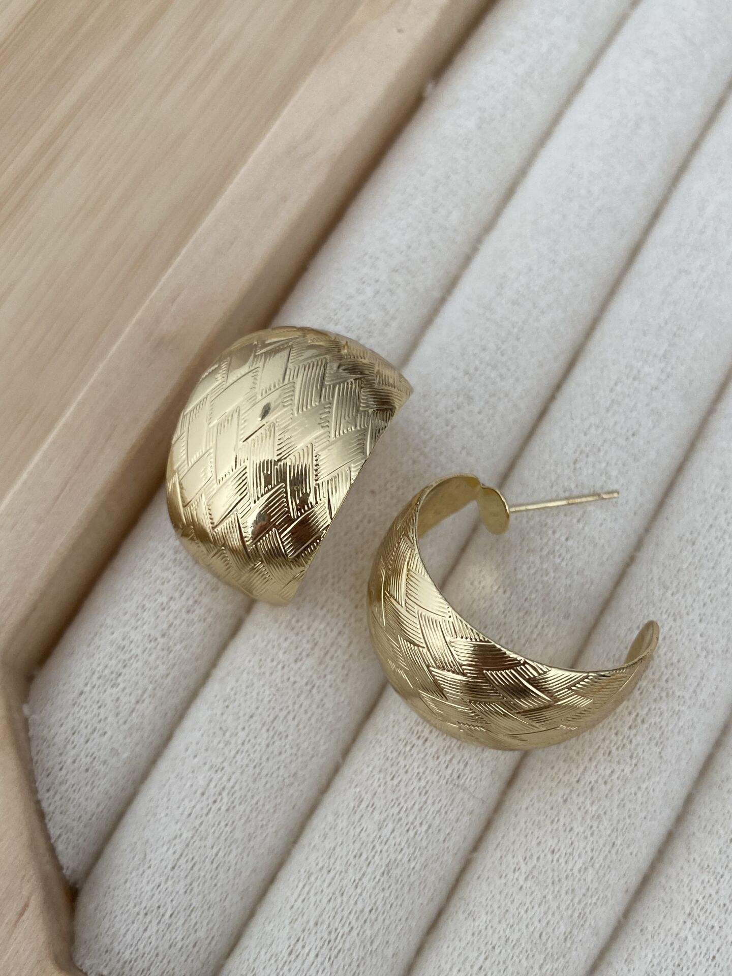 Lazer Kesim Dokulu Bombeli Sepet Yarım Halka Küpe