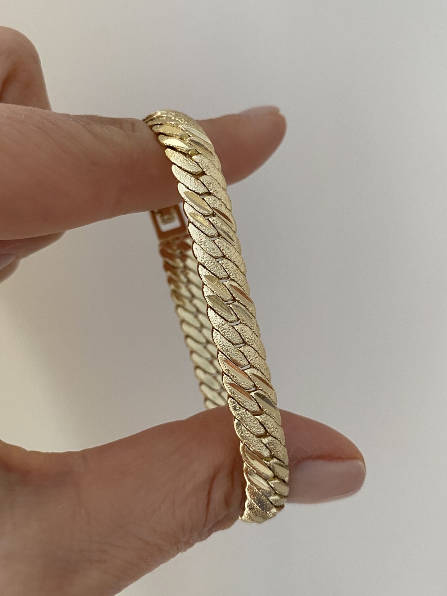 Lazer Kesim Dokulu Gurmet Bileklik (18cm) Altın kaplama kadın küpe modeli ile stilini tamamla. Hafif ve şık tasarım. Kararma yapmaz, suya dayanıklıdır. Hızlı kargo avantajı. 102311 Lazer Kesim Dokulu Gurmet Bileklik (18cm)