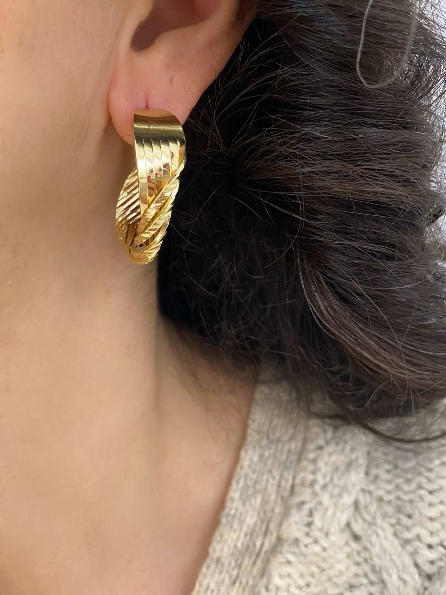 Lazer Kesim Dokulu Yarım Burgu Halka Küpe