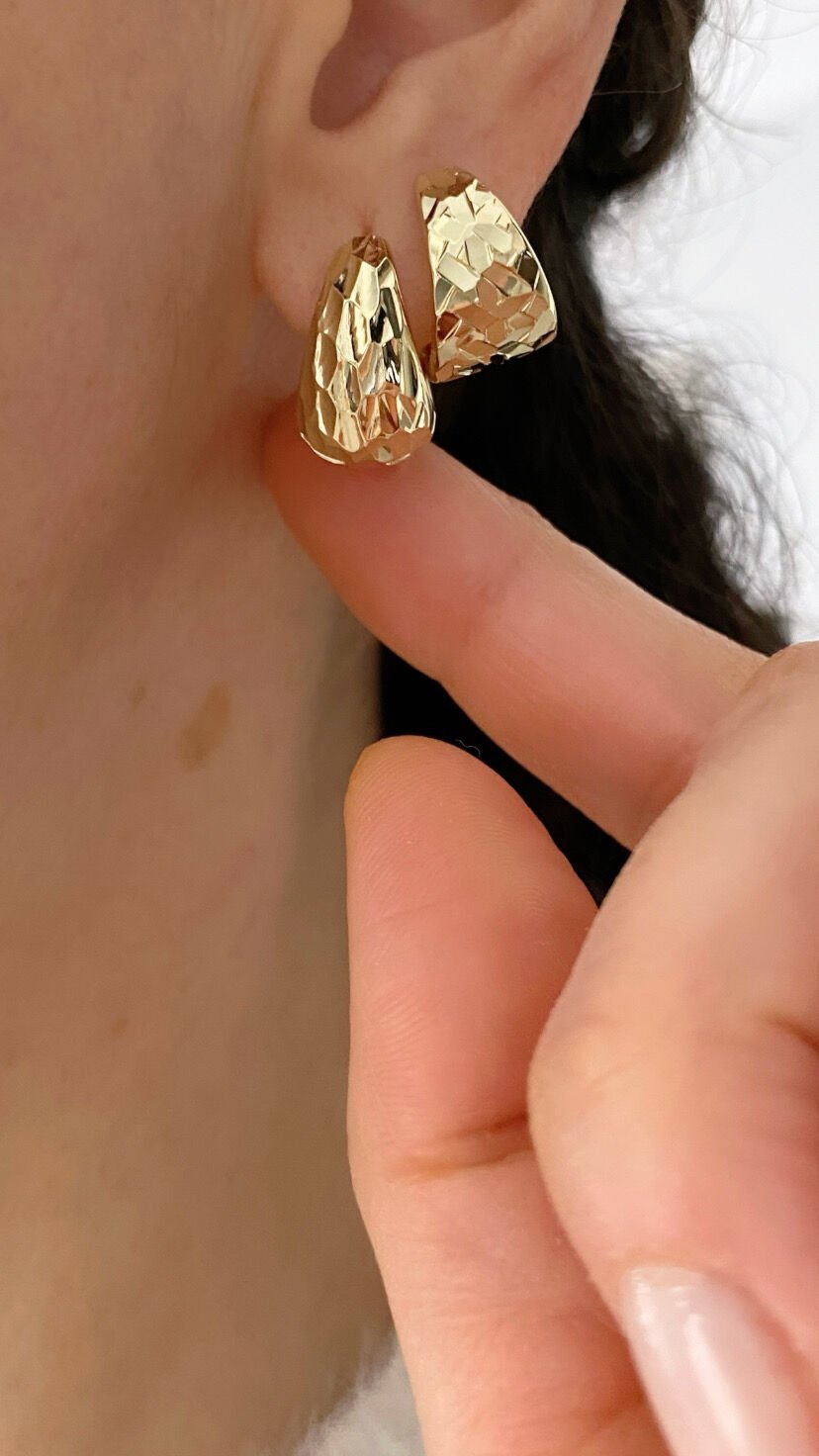 Lazer Kesim Krater Desen Halka Küpe Altın kaplama kadın küpe modeli ile stilini tamamla. Hafif ve şık tasarım. Kararma yapmaz, suya dayanıklıdır. Hızlı kargo avantajı. 102986 Lazer Kesim Krater Desen Halka Küpe