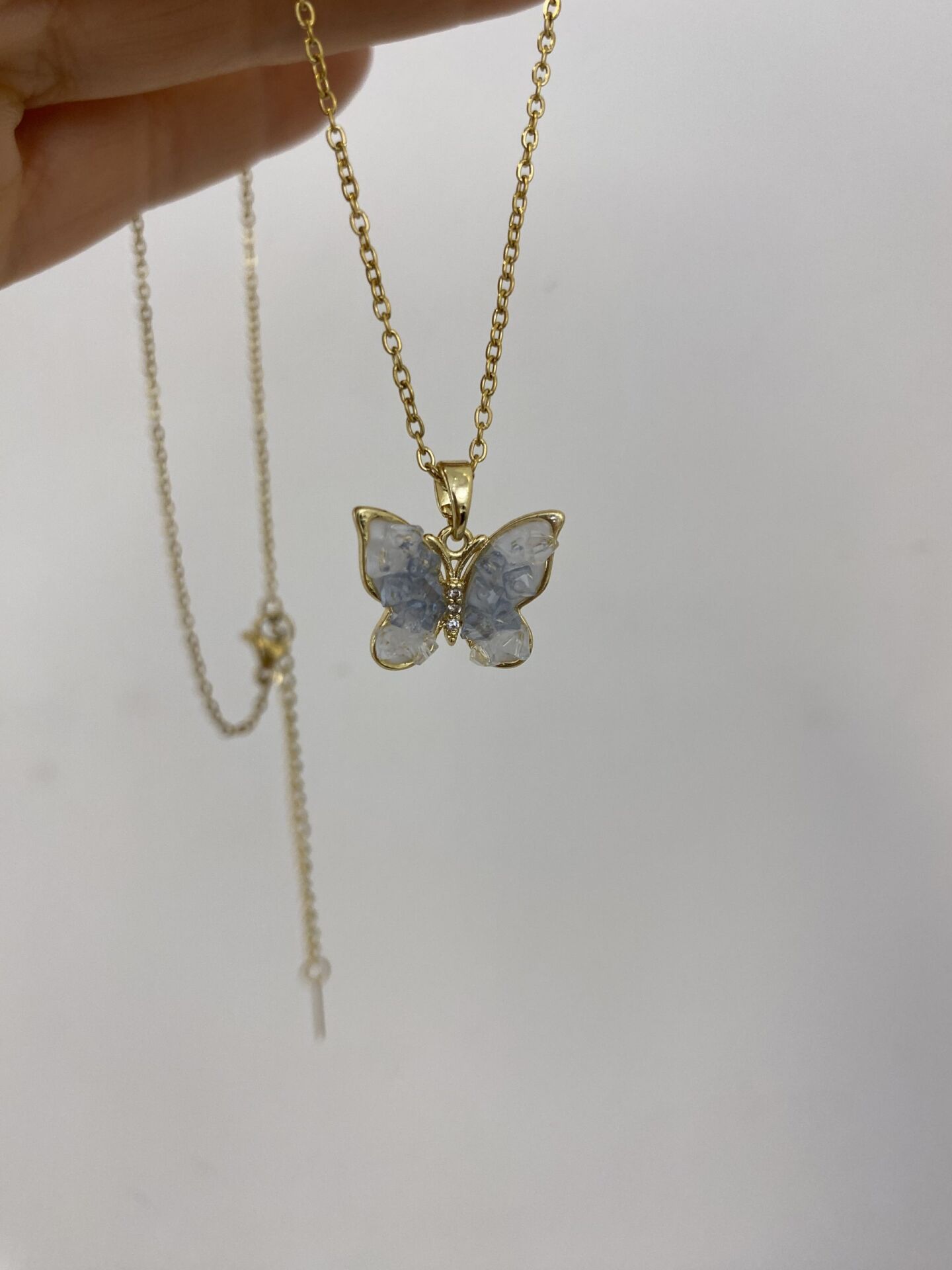 Mavi Taş Kelebek Kolye Ürünler çelik olup; parfüm,krem kimyasallardan uzak tutulmalı.Su ile temas ettirilmemelidir