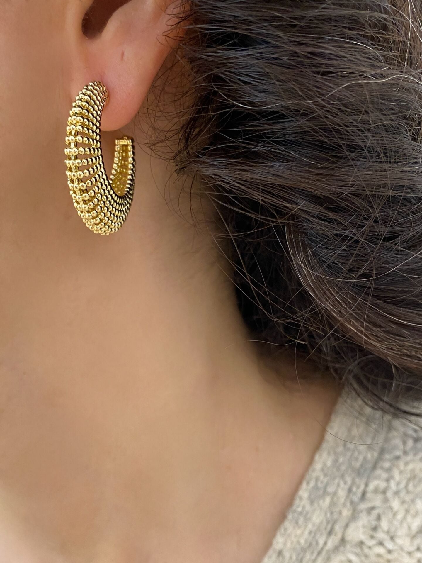 Midyat İşçilik Yarım Halka Küpe Altın kaplama kadın küpe modeli ile stilini tamamla. Hafif ve şık tasarım. Kararma yapmaz, suya dayanıklıdır. Hızlı kargo avantajı. 102273 Midyat İşçilik Yarım Halka Küpe