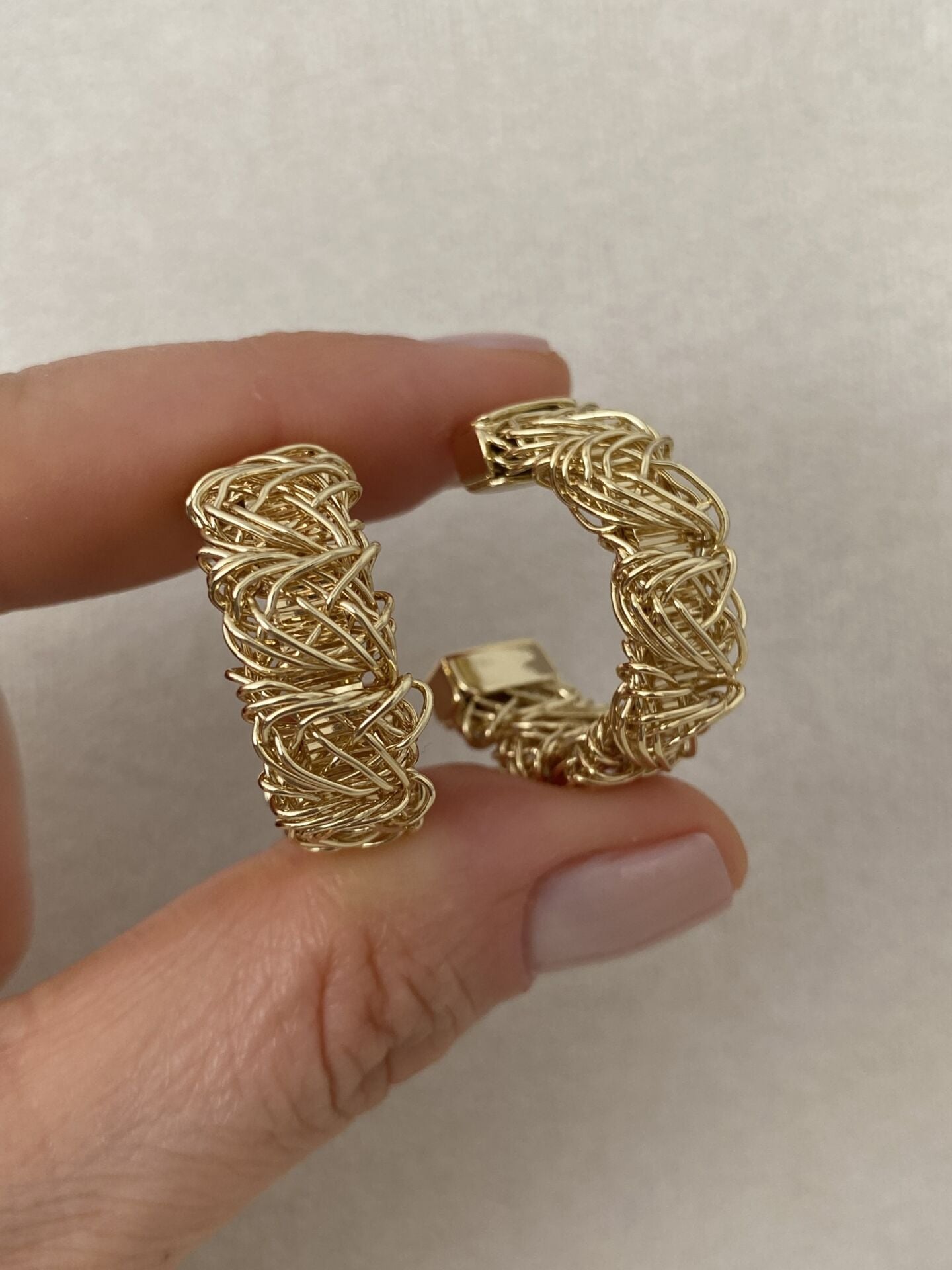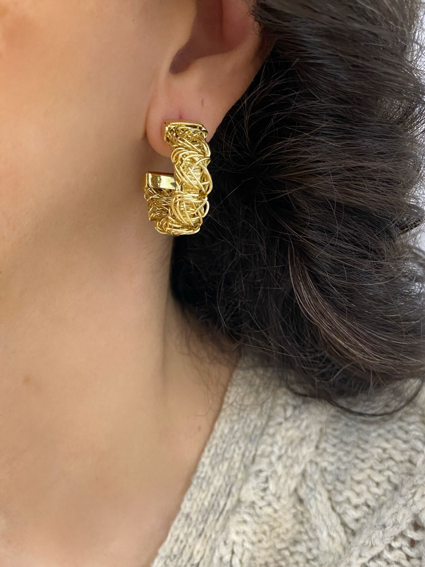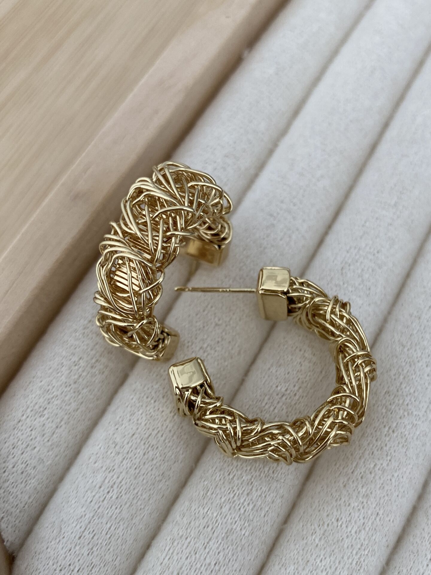 Midyat İşçilik Tel Sarmal Yarım Halka Küpe Altın kaplama kadın küpe modeli ile stilini tamamla. Hafif ve şık tasarım. Kararma yapmaz, suya dayanıklıdır. Hızlı kargo avantajı. 102276 Midyat İşçilik Tel Sarmal Yarım Halka Küpe