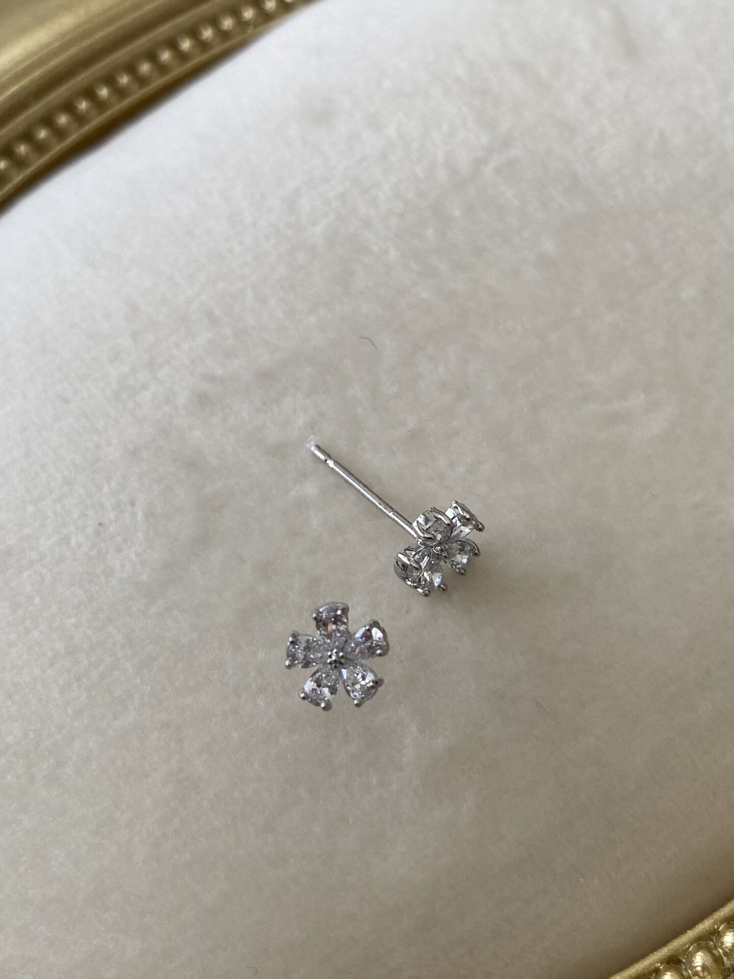 “Özel Seri” Minimal Çiçek Model Kristal Taşlı Küpe Silver