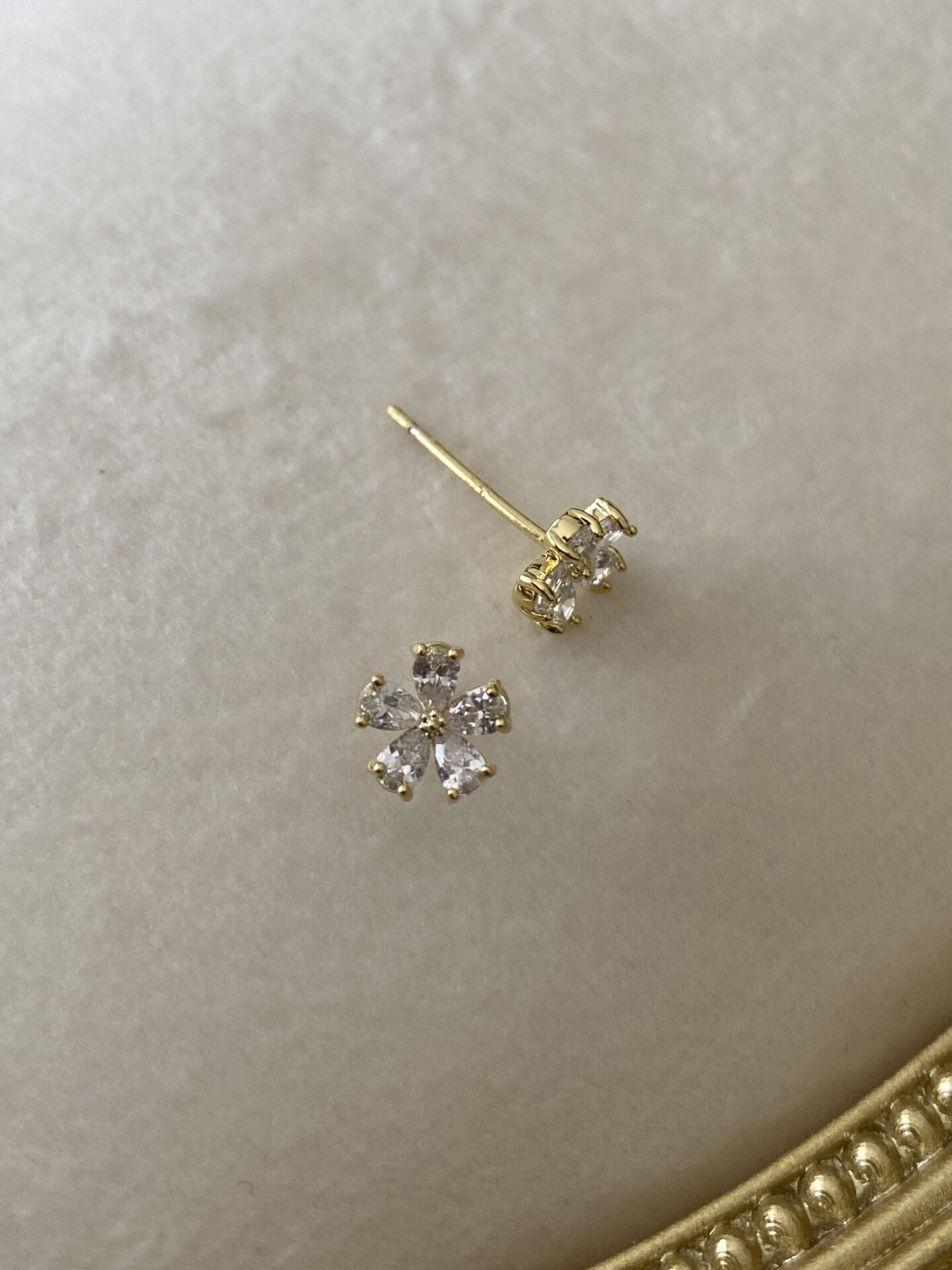 “Özel Seri” Minimal Çiçek Model Kristal Taşlı Küpe Gold