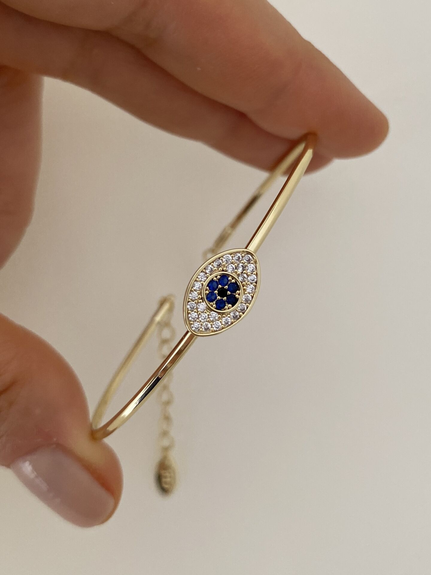 Minimal Mavi Göz Figür İnce Kelepçe Bileklik
