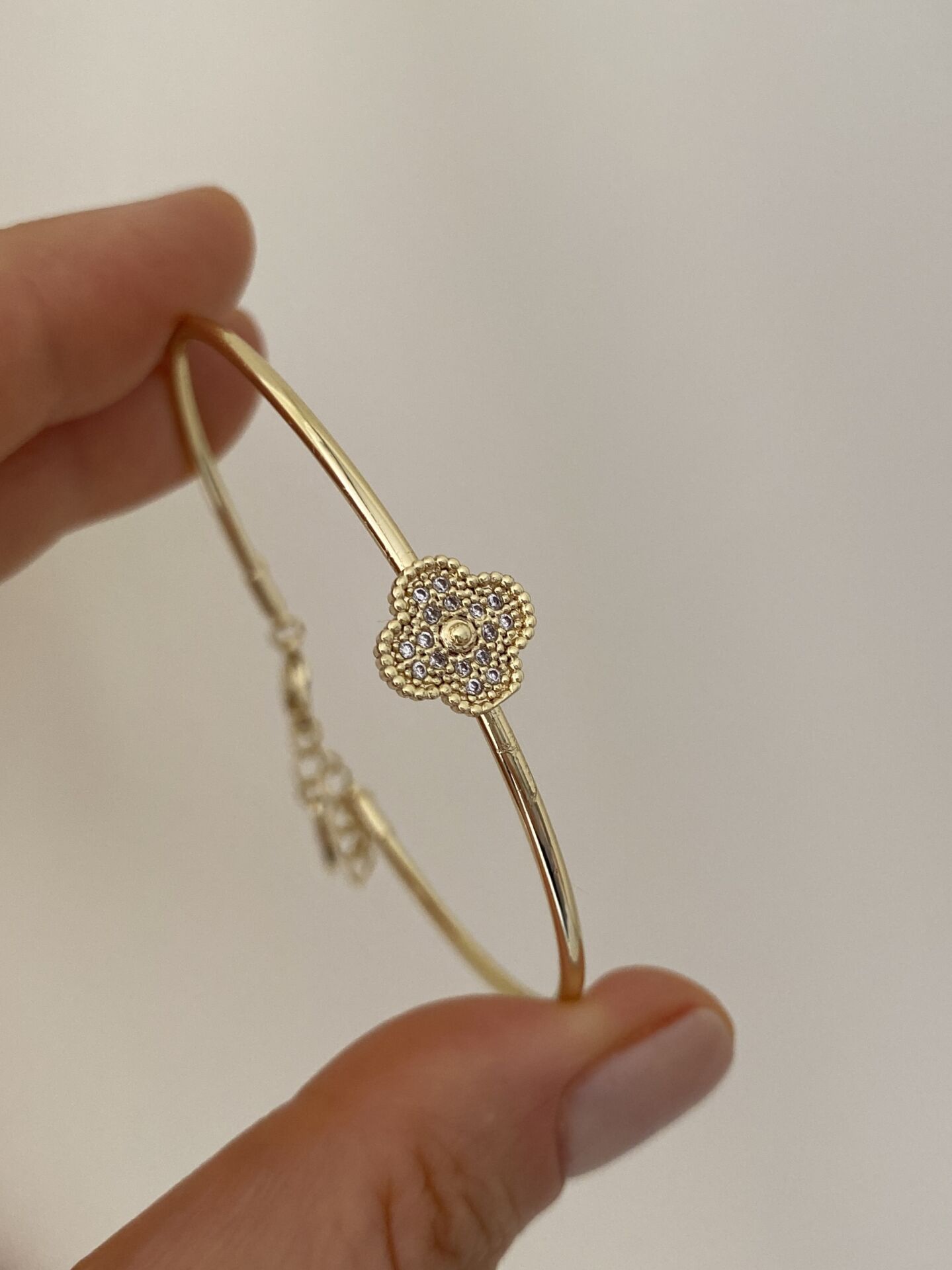 Minimal Yonca Figür İnce Kelepçe Bileklik