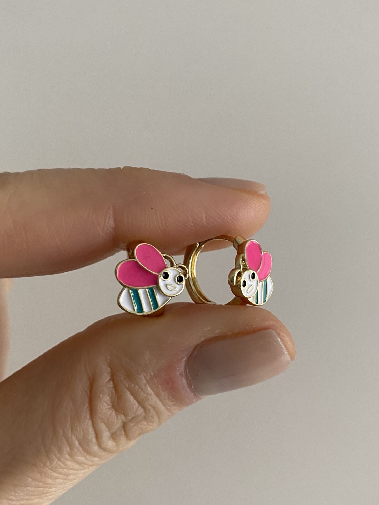 ''Özel Seri'' Çocuk Pembe Kanatlı Arı Halka Küpe (1cm iç çap)