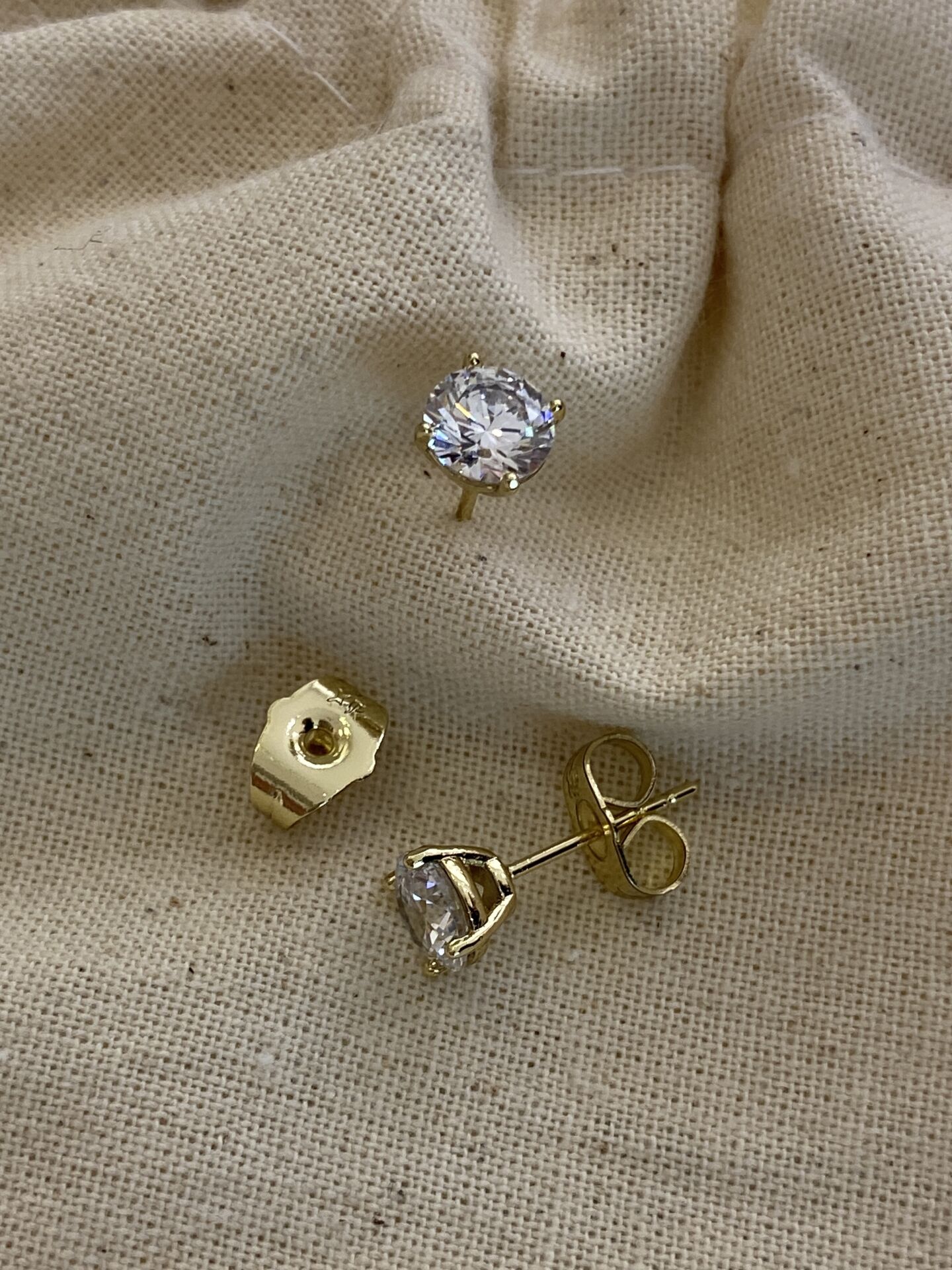 “Özel Seri” Minimal Dört Tırnaklı Tek Taş Küpe Gold (6mm)