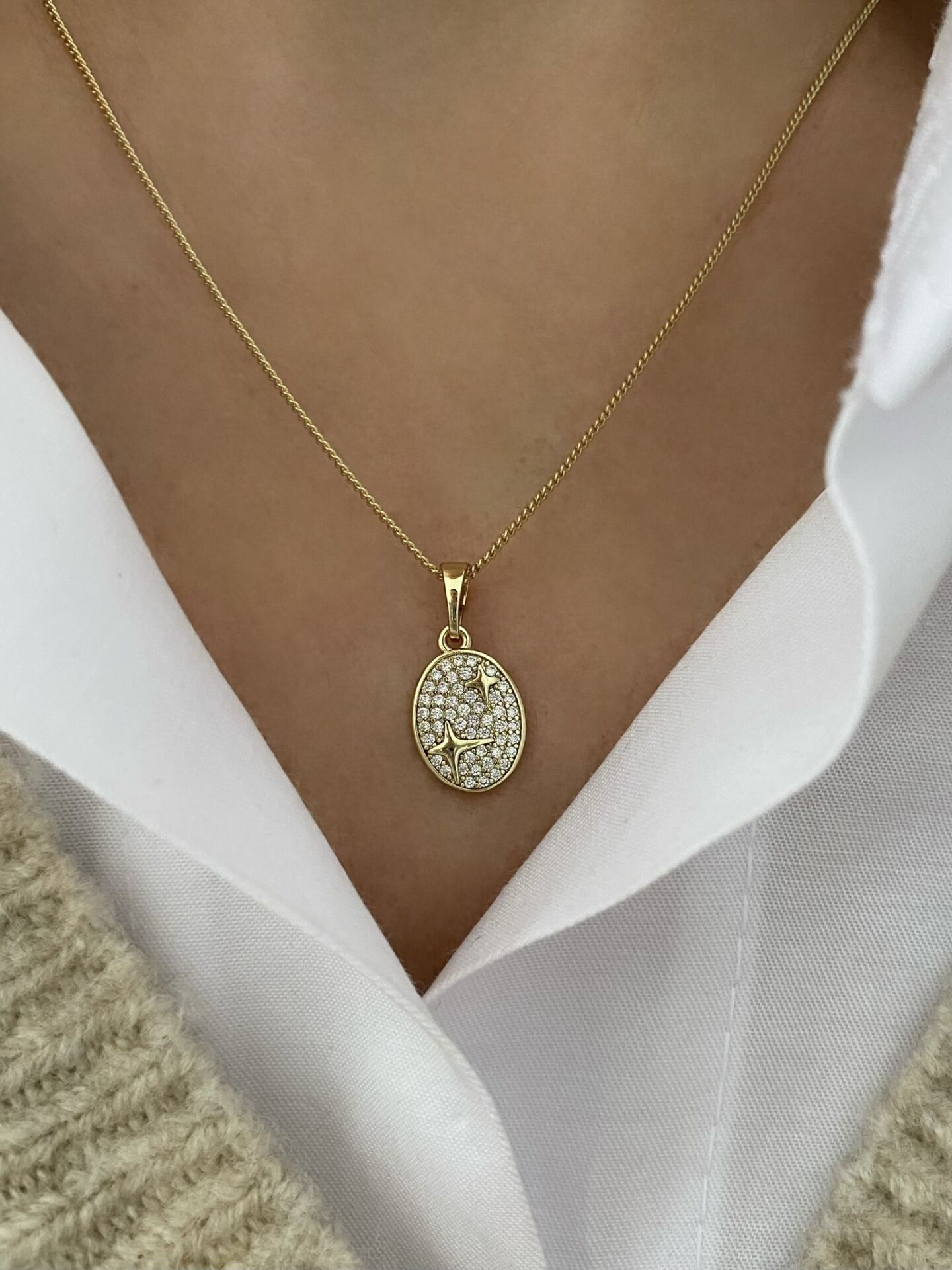 “Özel Seri” Gold Çerçeveli Yıldız Detaylı Taşlı Oval Kolye