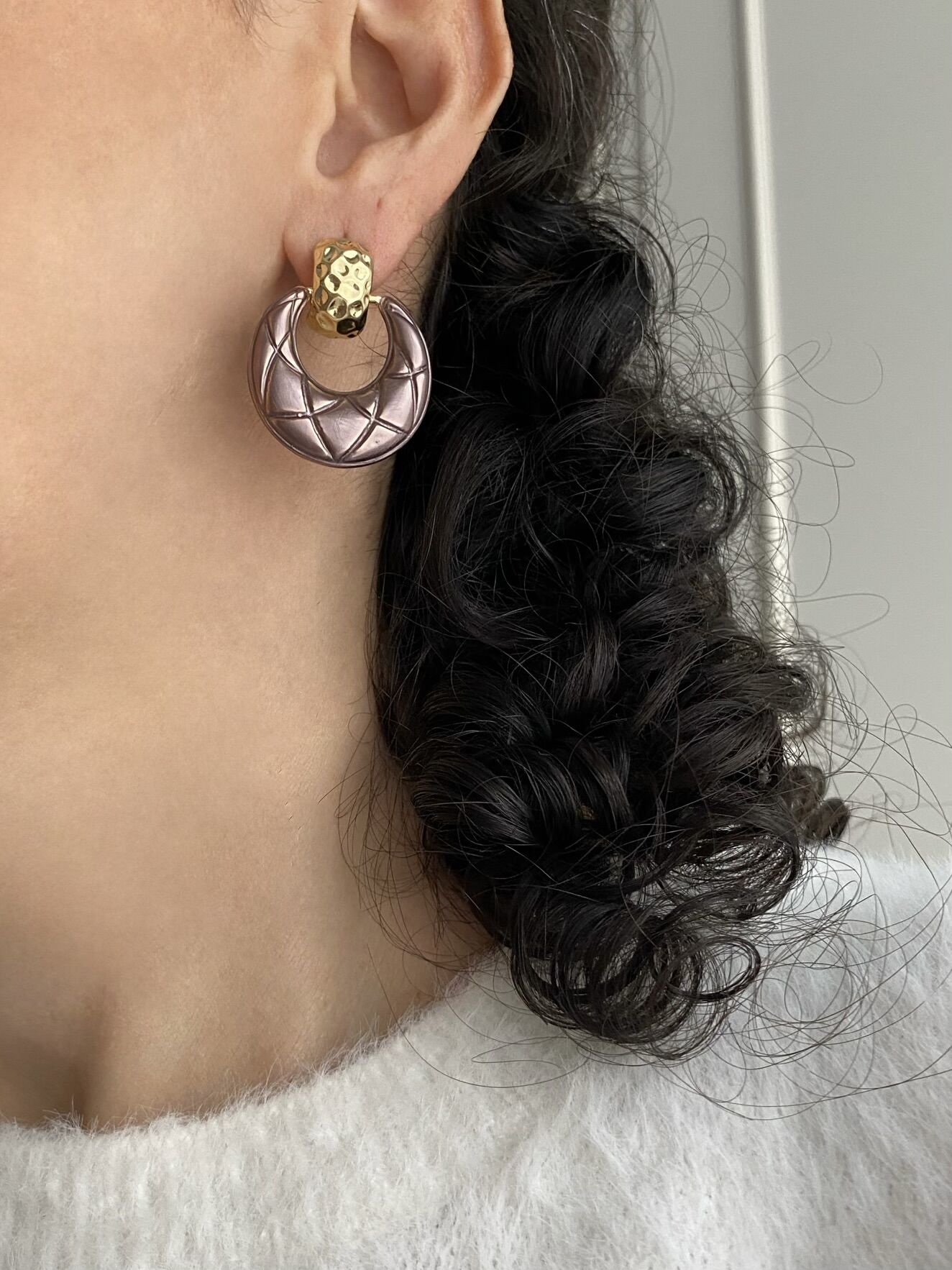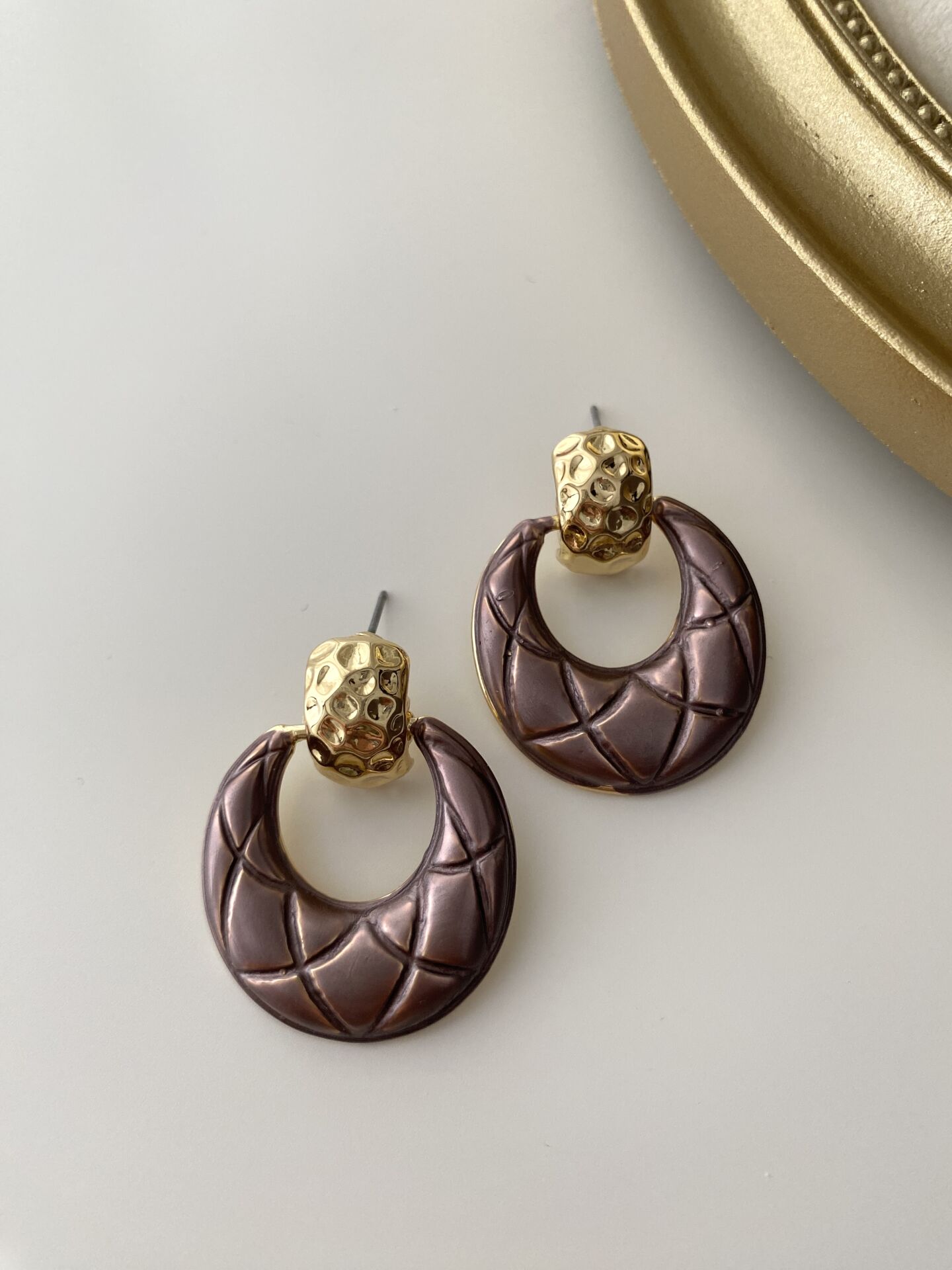 Sallantılı Gold Detaylı Mürdüm Vintage Küpe