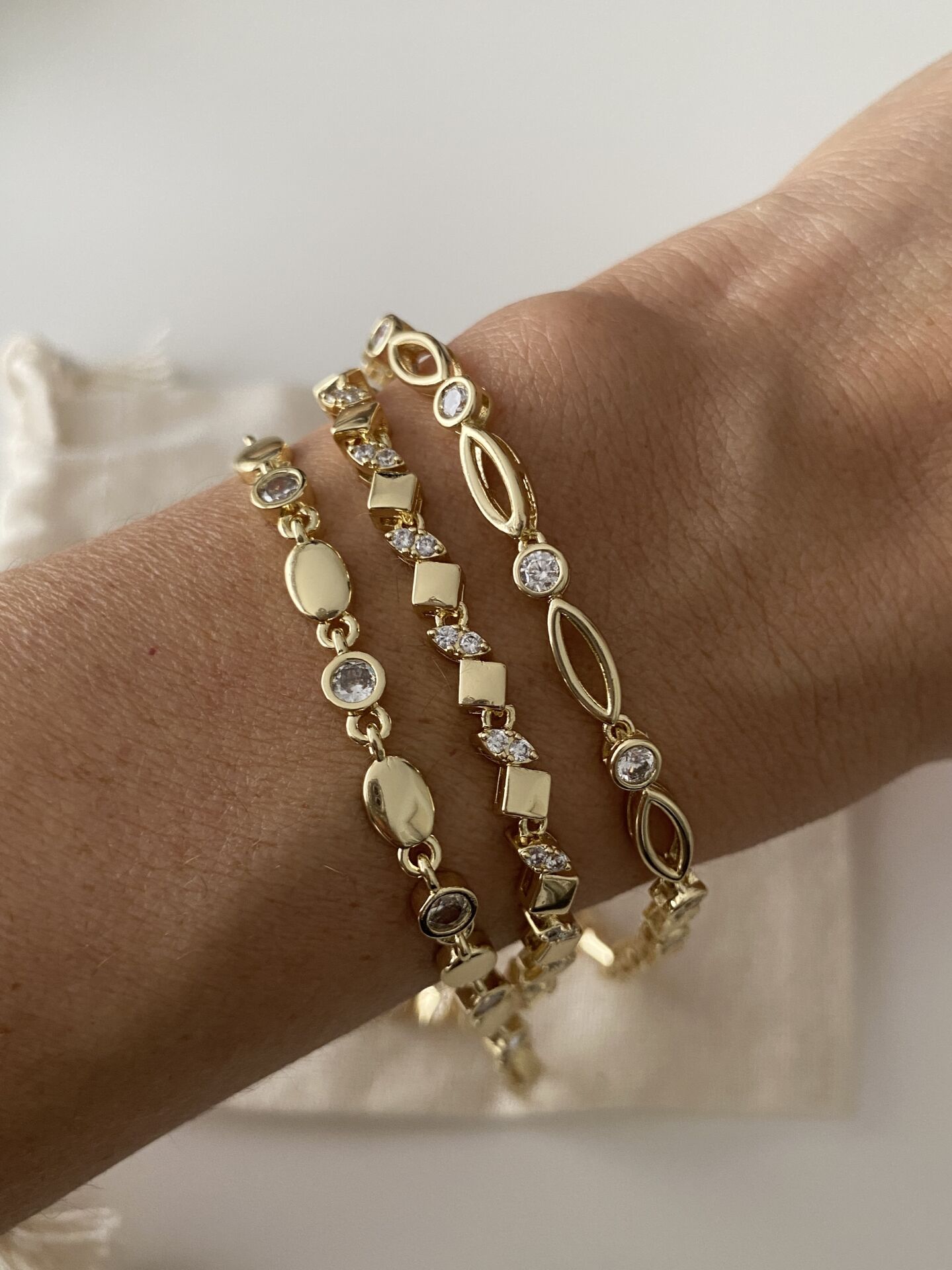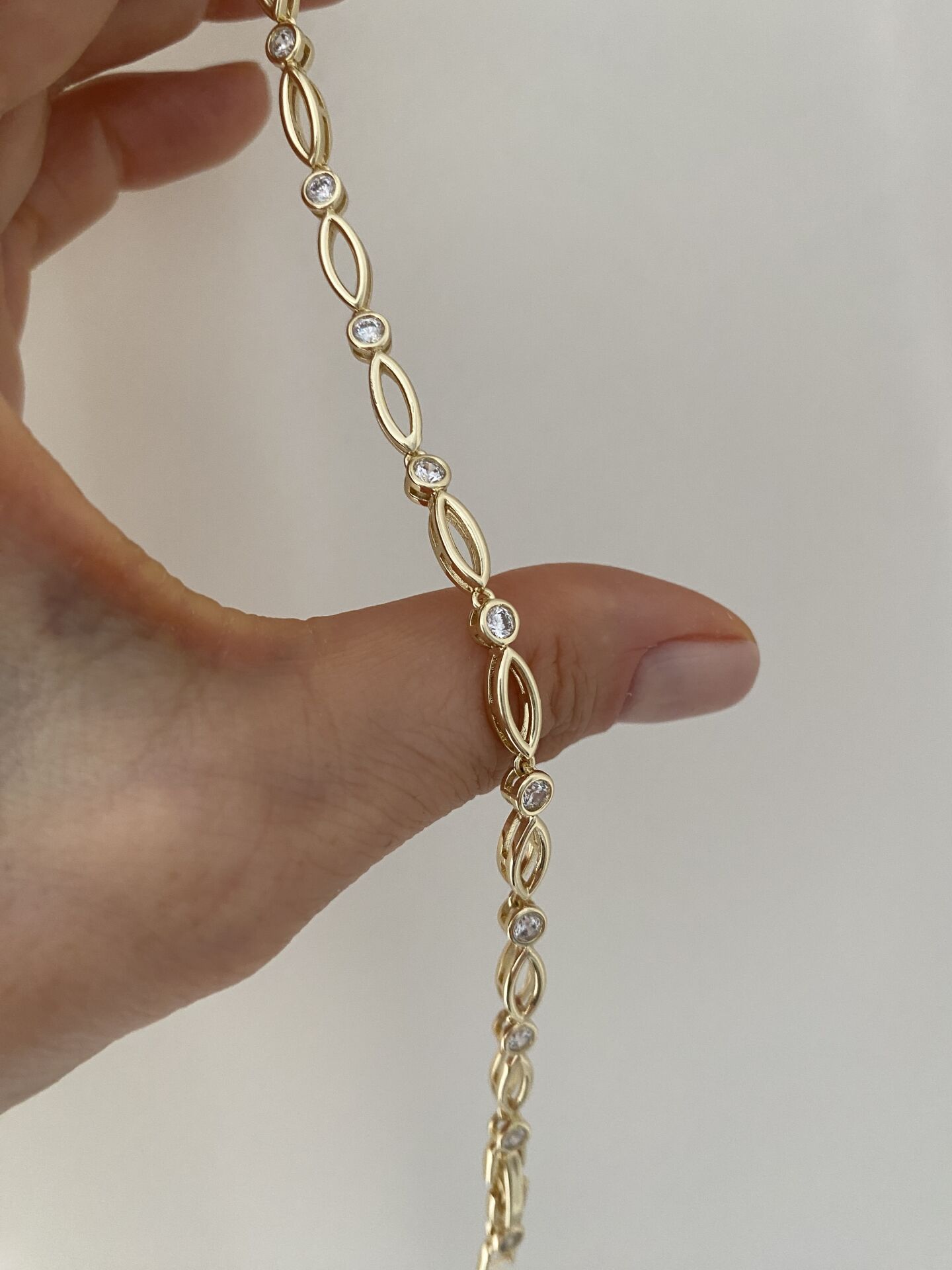 Sıralı Yuvarlak Taşlı Yaprak Bileklik Altın kaplama kadın küpe modeli ile stilini tamamla. Hafif ve şık tasarım. Kararma yapmaz, suya dayanıklıdır. Hızlı kargo avantajı. 102086 Sıralı Yuvarlak Taşlı Yaprak Bileklik