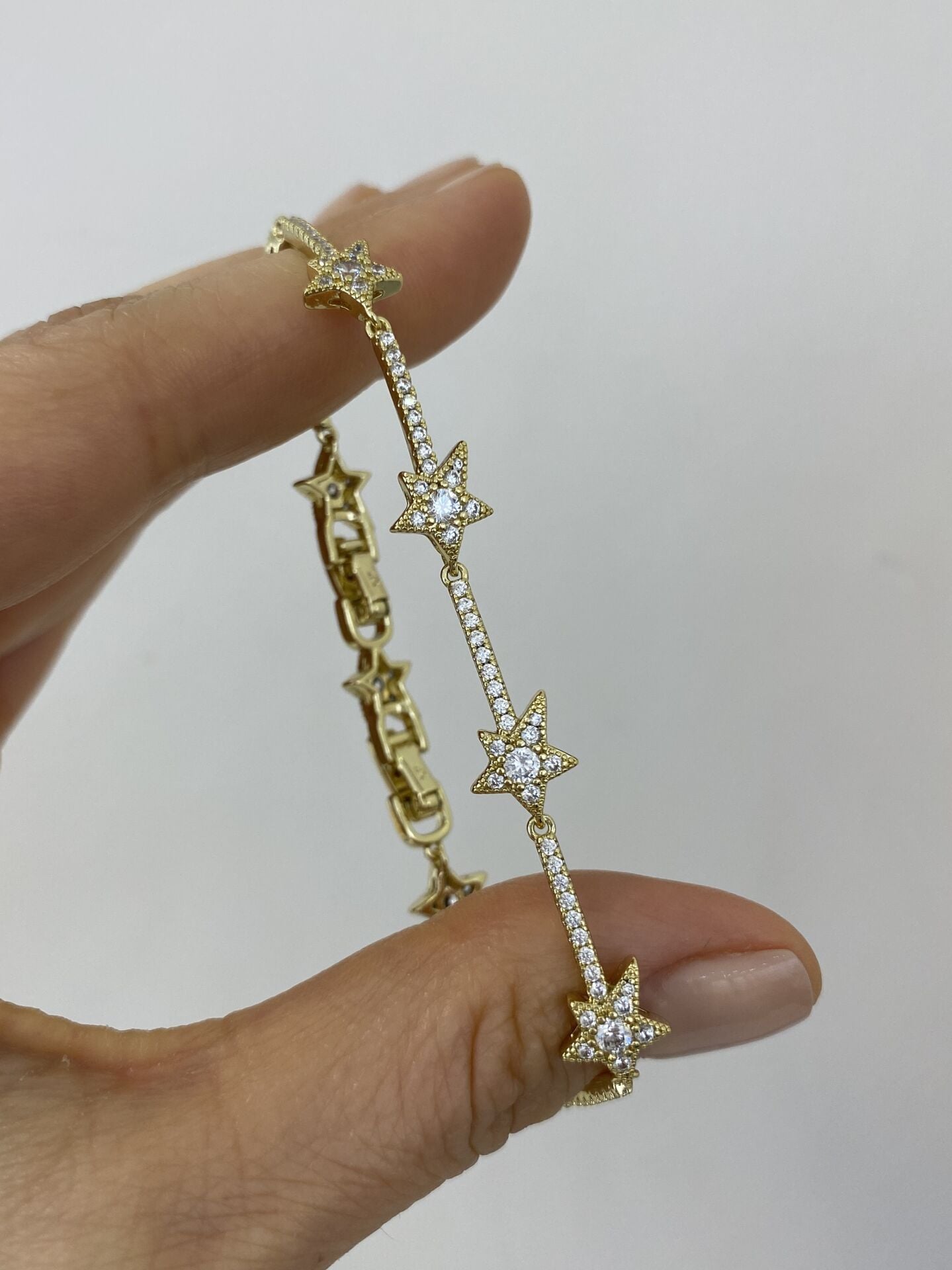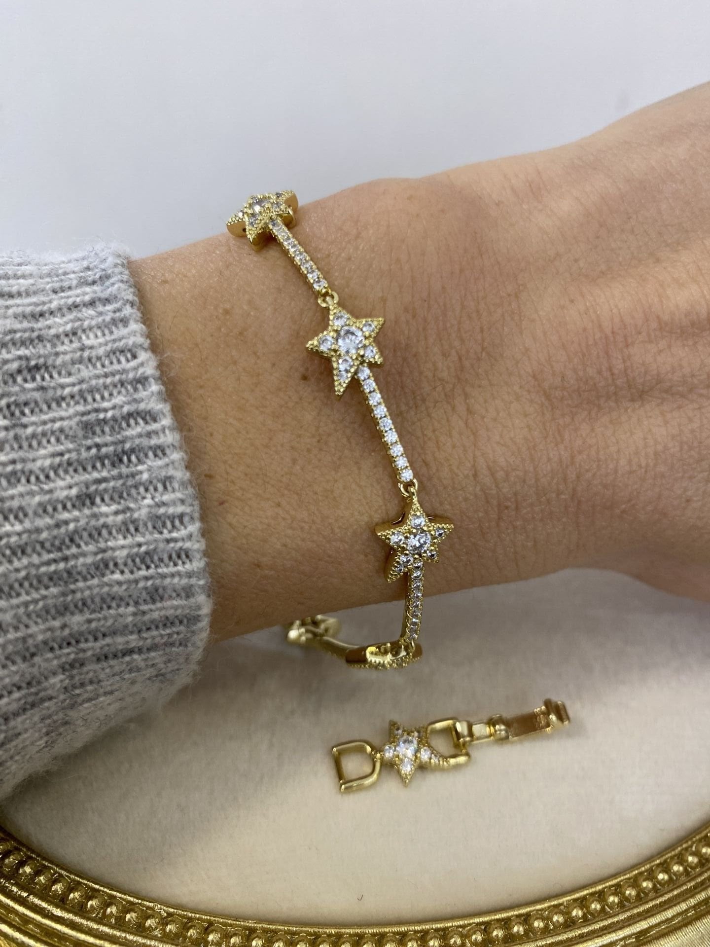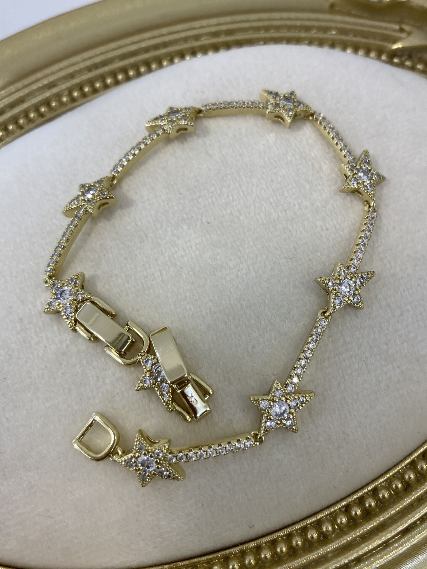Taşlı Asimetrik Yıldız Geçidi Bileklik (17cm+ek)