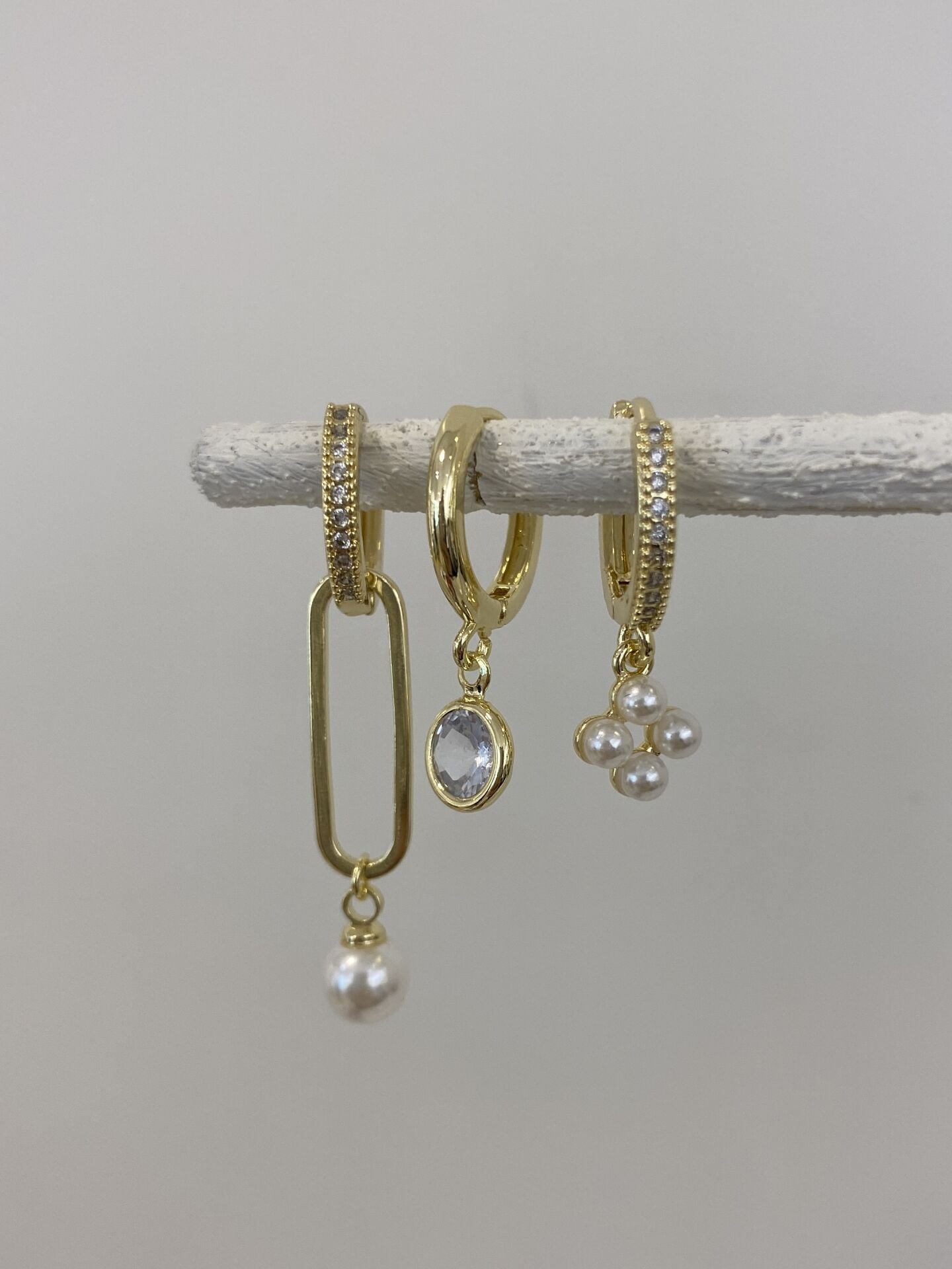 Üçlü İnci Detay Set Küpe