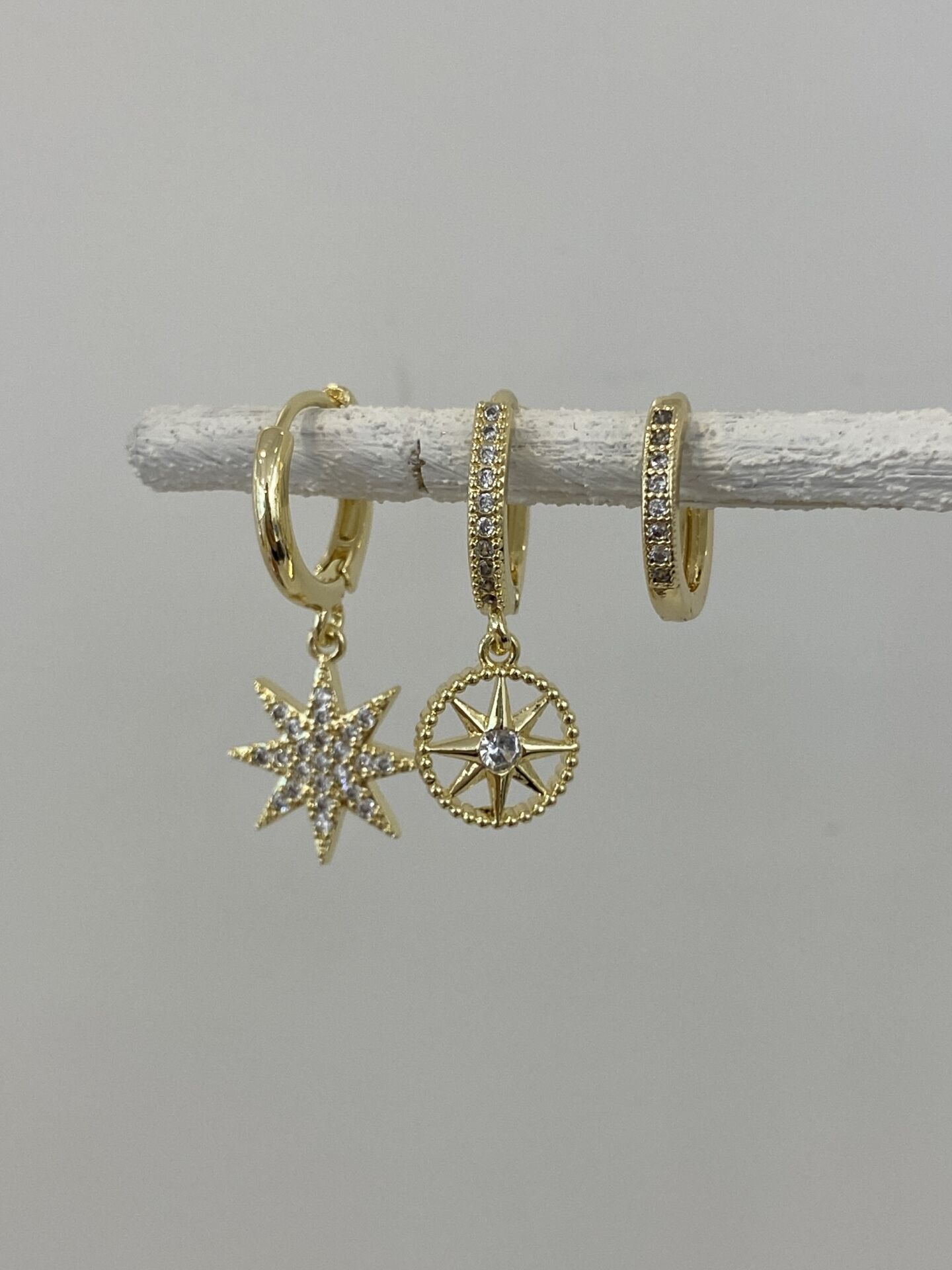 Üçlü Kutup Yıldız Detay Set Küpe Altın kaplama kadın küpe modeli ile stilini tamamla. Hafif ve şık tasarım. Kararma yapmaz, suya dayanıklıdır. Hızlı kargo avantajı. 102260 Üçlü Kutup Yıldız Detay Set Küpe
