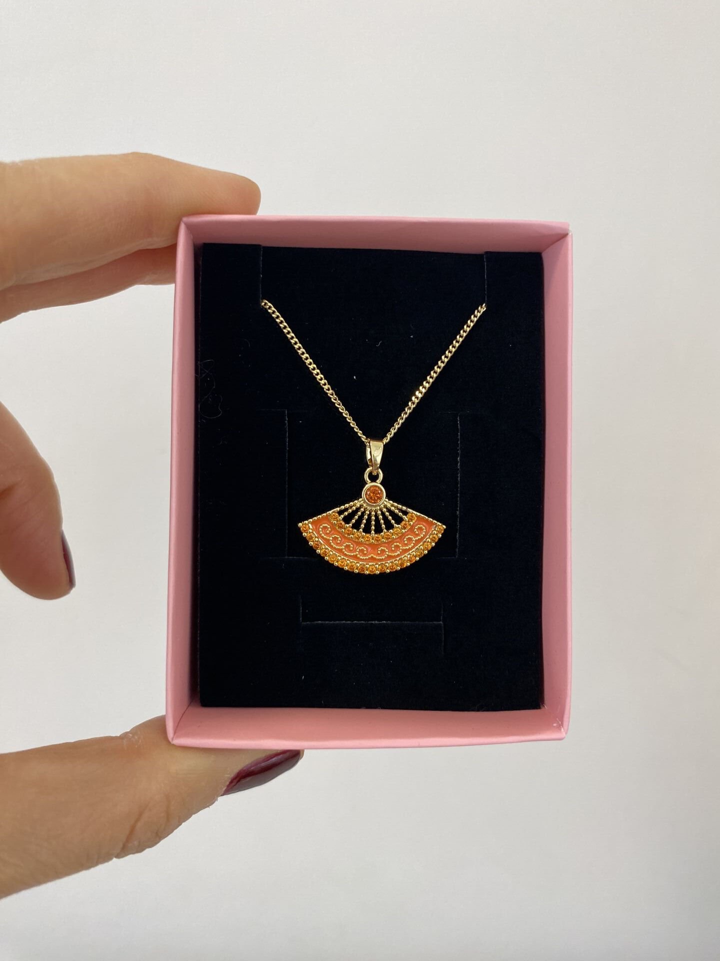 Yılbaşı Taşlı Kırmızı Yelpaze Kolye